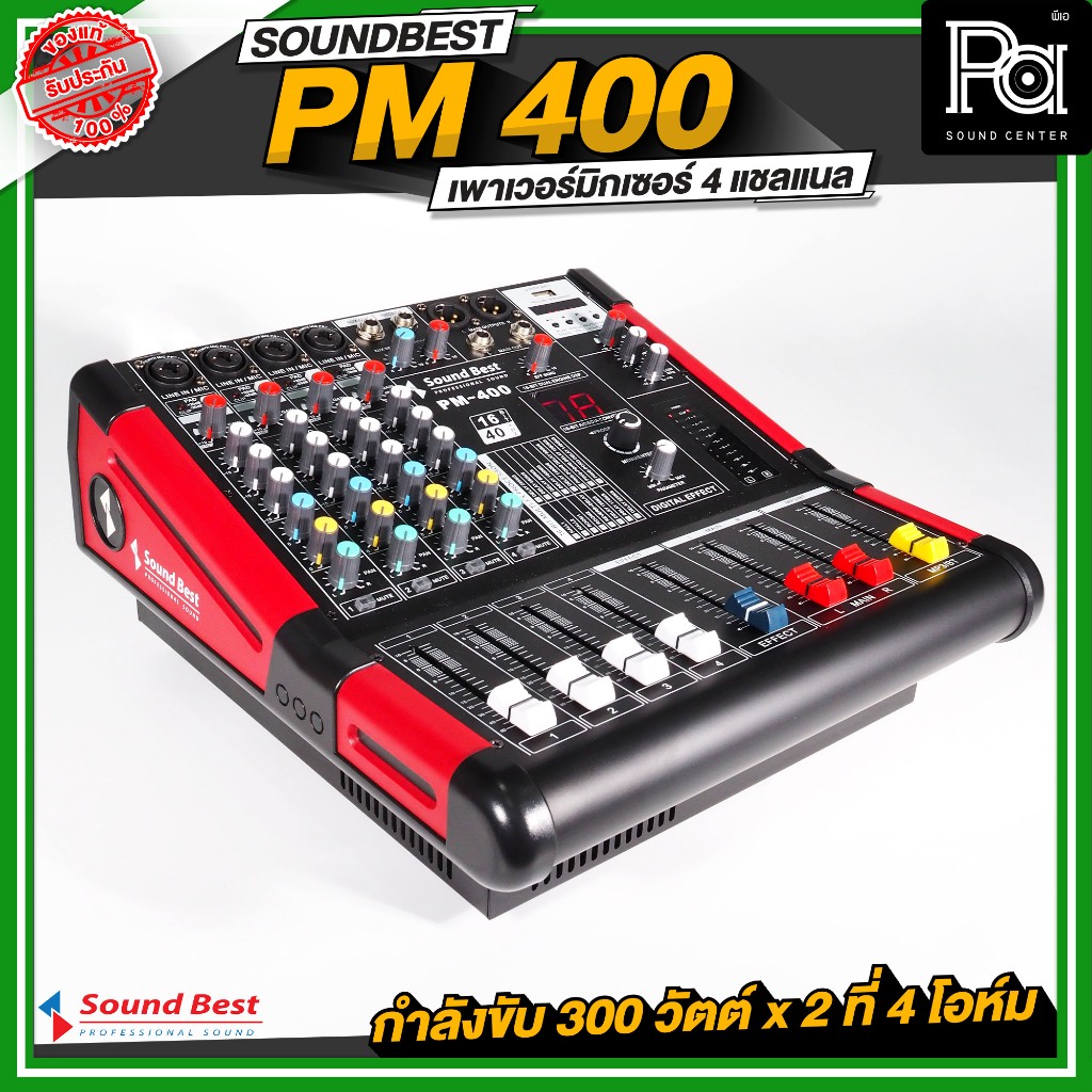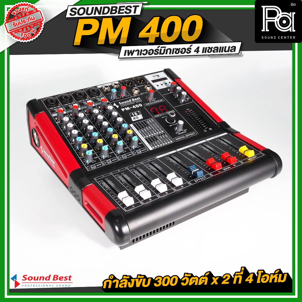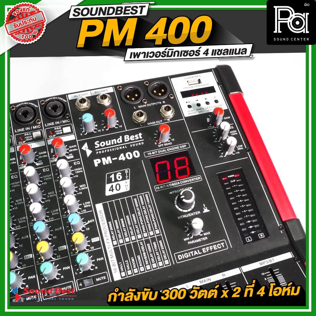 SOUNDBEST PM 400 POWER MIXER 4 CH 300W. x 2 สเตอริโอ เพาเวอร์มิกเซอร์ เอฟเฟคแท้ USB Bluetooth PM400