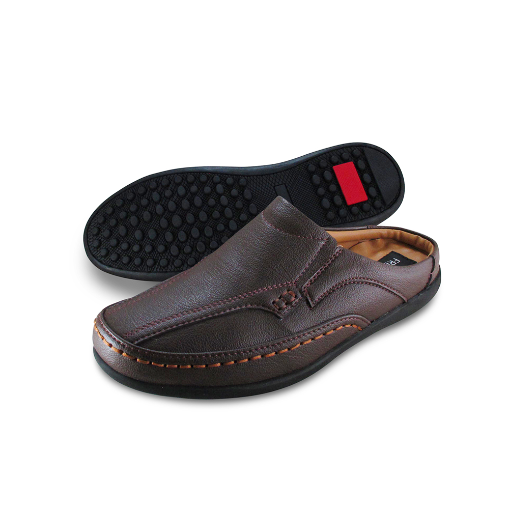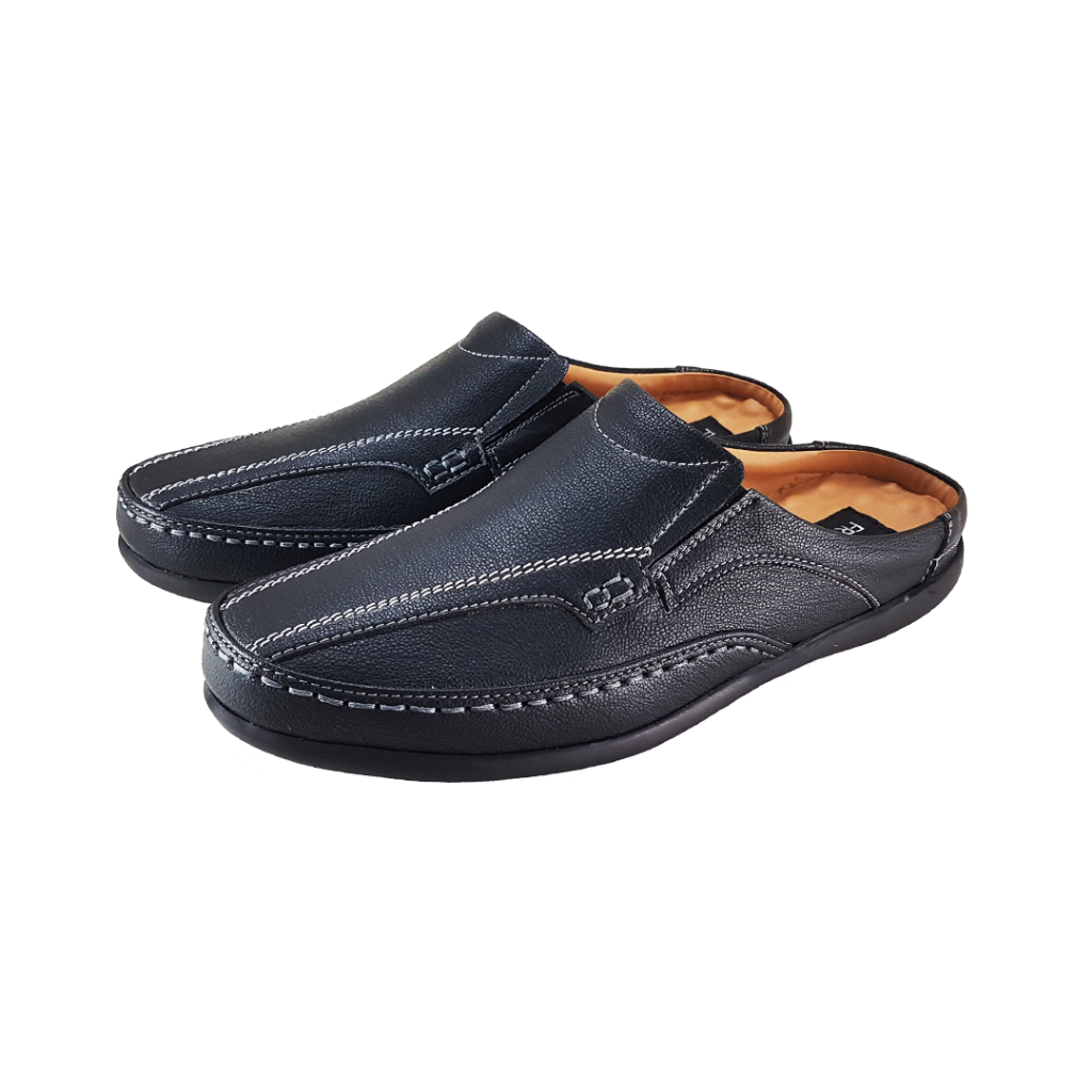 FREEWOOD OPEN HEEL CASUAL SHOES รองเท้าลำลองผู้ชาย หนังแท้ แบบเปิดส้น รุ่น 79-6141 สีดำ / สีน้ำตาล ( BLACK / BROWN )