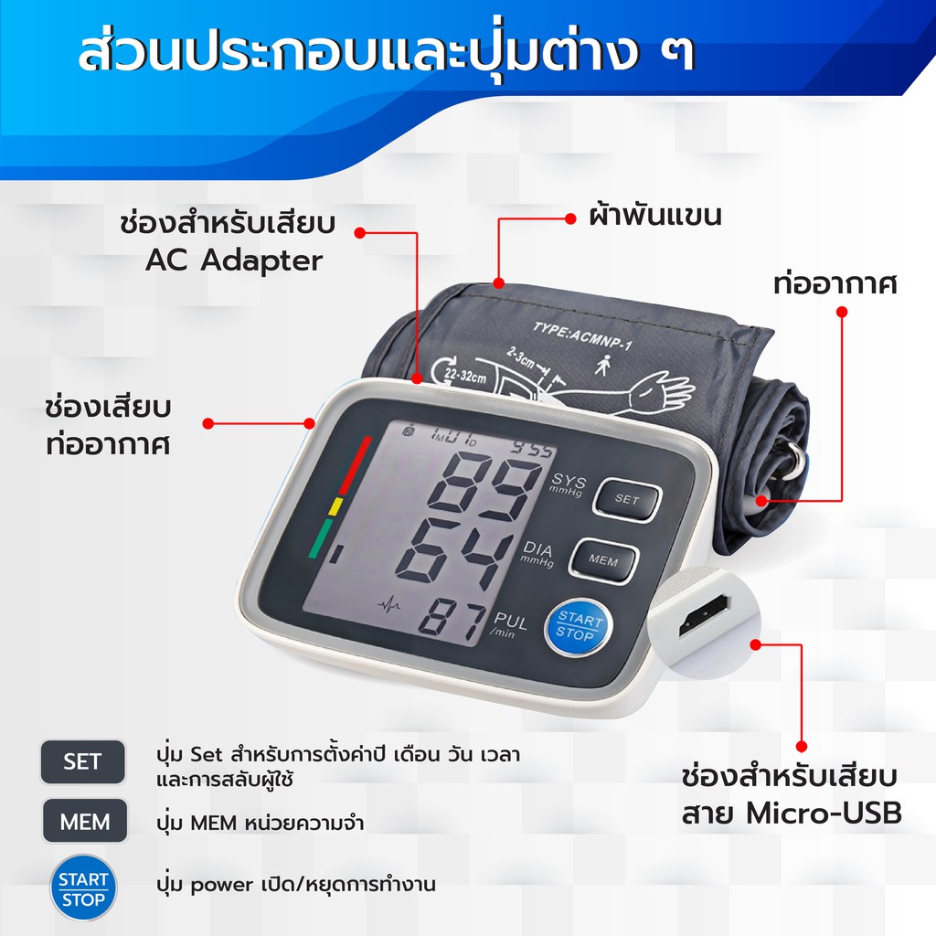 Sabaideecare เครื่องวัดความดันโลหิต รุ่น U80EH เครื่องวัดความดัน ที่วัดความดัน Blood Pressure Monitor วัดความดันโลหิต