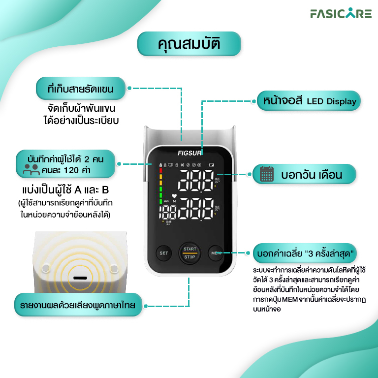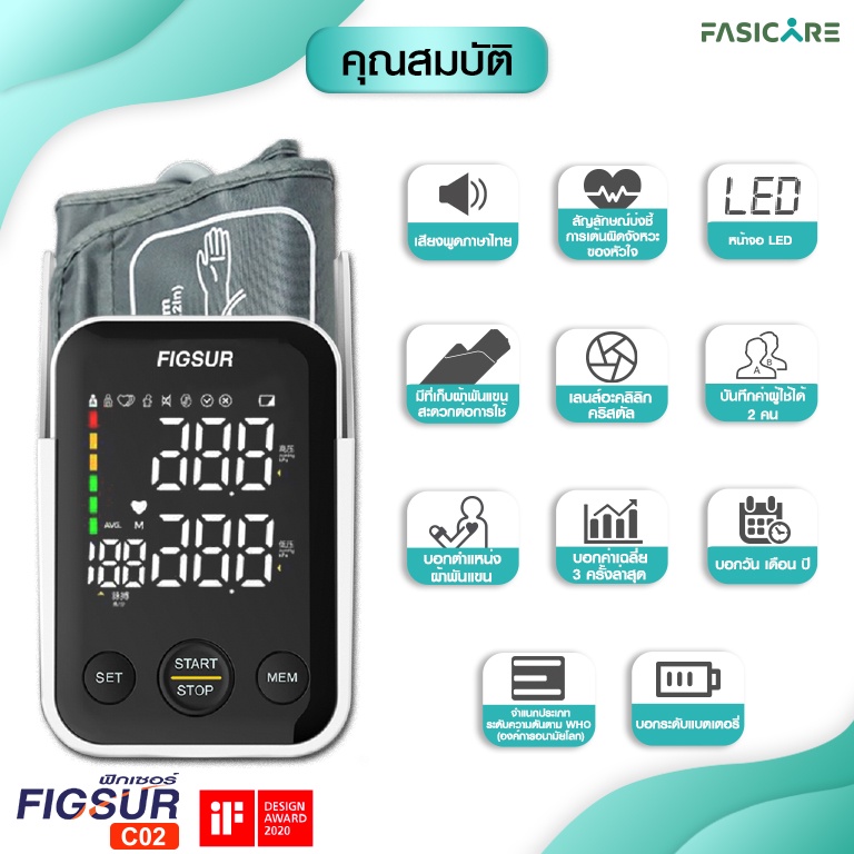 เครื่องวัดความดันโลหิต ชนิดต้นแขน (พูดภาษาไทยได้) ฟิกเซอร์ FIGSUR รุ่นC02 ประกัน5ปี