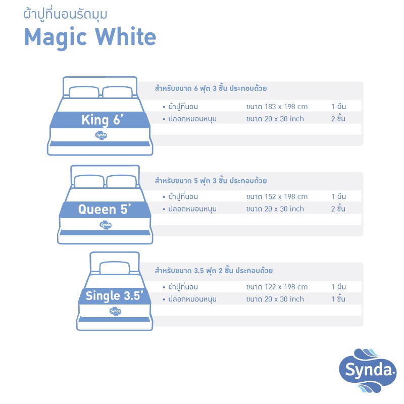 Synda ผ้าปูที่นอนรัดมุมสีพื้น Cotton รุ่น MAGIC WHITE สีขาว สีพื้น