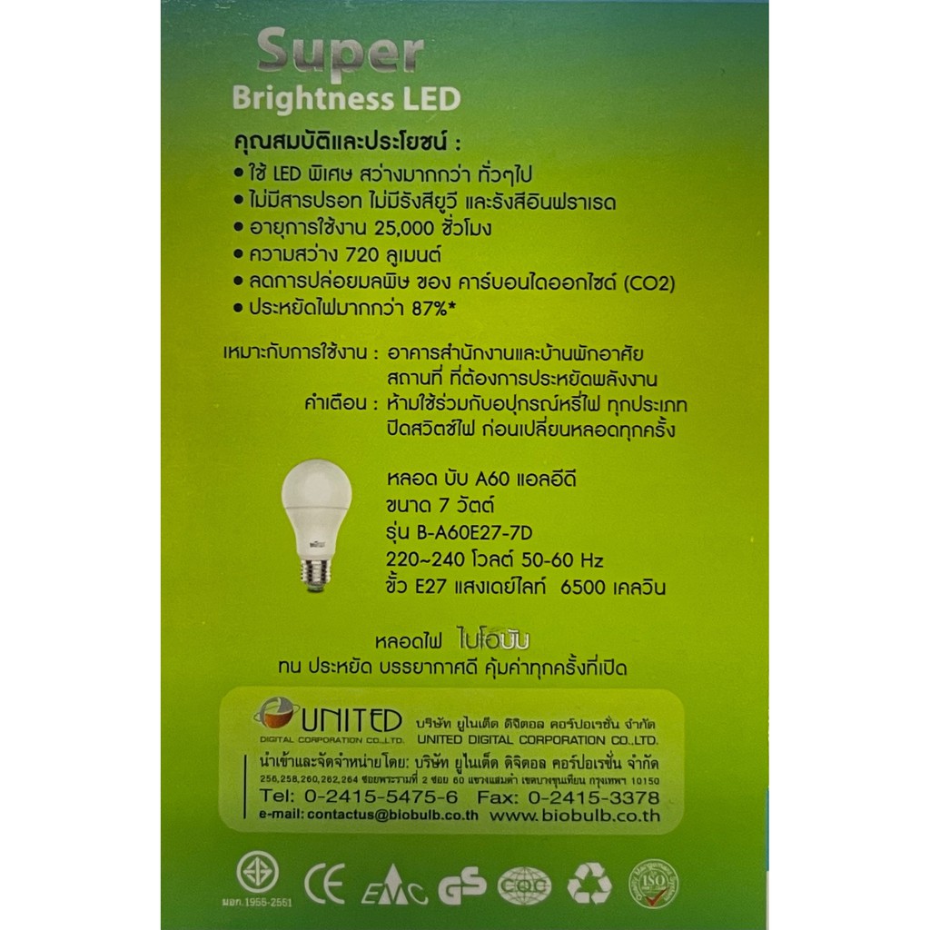 Biobulb หลอดไฟ LED หลอดไฟประหยัดพลังงาน ไฟ 7W 9W 13W E27