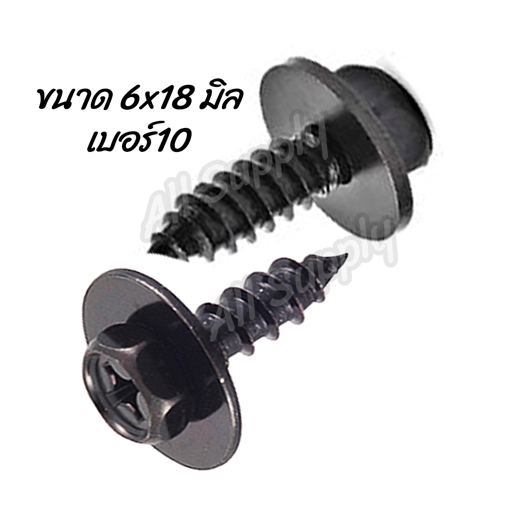 สกรู THW บังโคลน [จำนวน 2/10 ตัว] ขนาด M6x18 มิล (หัวเบอร์10) รถ สกรู น็อต ยึดบังโคลน ซุ้มล้อ สีดำ