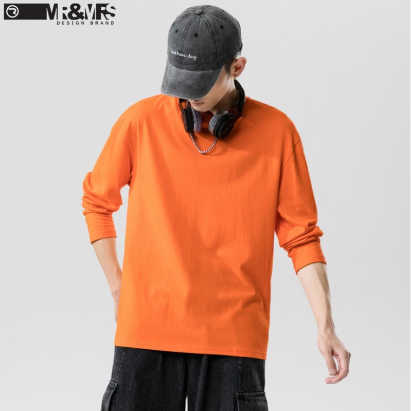 เสื้อยืดสีพื้นลายเรียบ คอกลมแขนยาว แฟชั่น Unisex สำหรับผู้ชาย/ผู้หญิง T-Shirt ผ้า Cotton รุ่น แขนยาว (สีส้ม)
