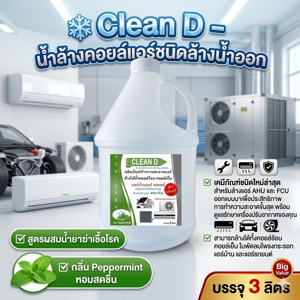 CLEAN D น้ำยาล้างแอร์ ช่วยทำความสะอาดคราบสกปรก ช่วยฆ่าเชื้อแบคทีเรีย ช่วยดับกลิ่นไม่พึงประสงค์ กลิ่นส้ม