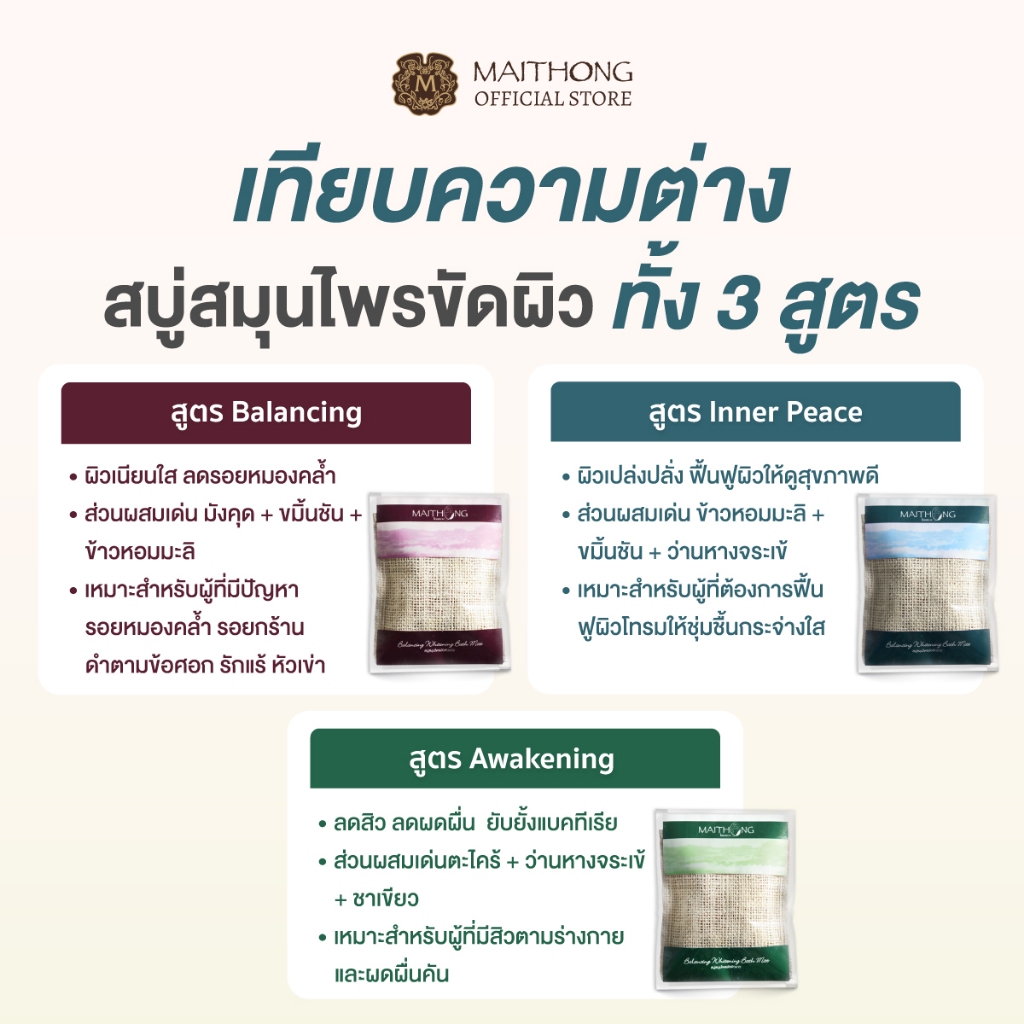Maithong ไหมทอง สบู่สมุนไพรขัดผิวขาว สูตร Inner Peace (สีฟ้า) 100g ขจัดเซลล์ผิวเก่า ลดรอยดำ รักแร้ขาว ฟื้นฟูผิวเสีย