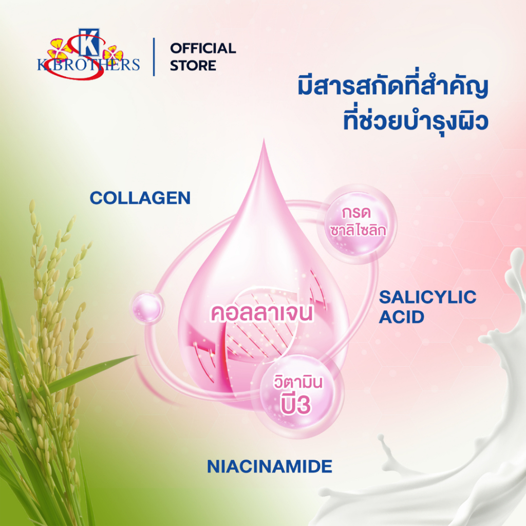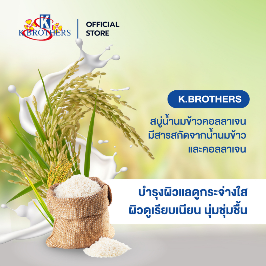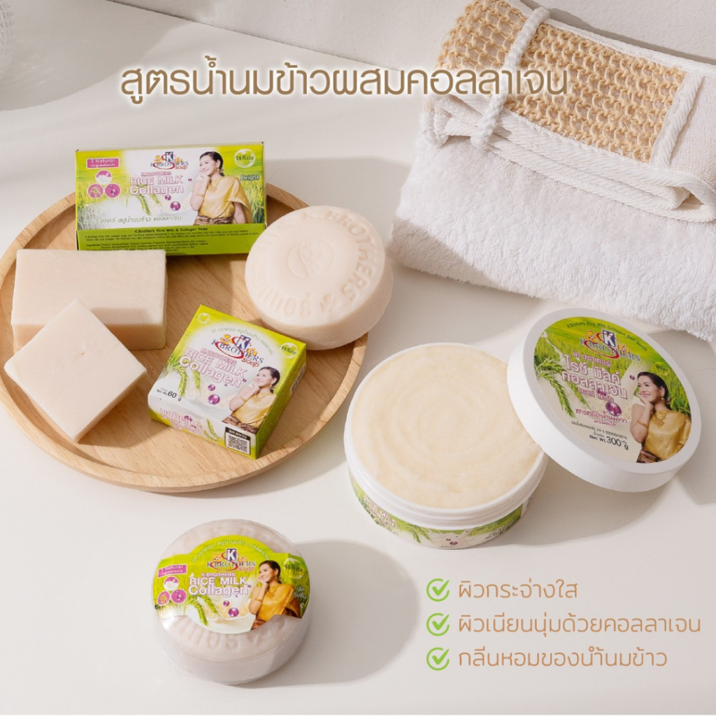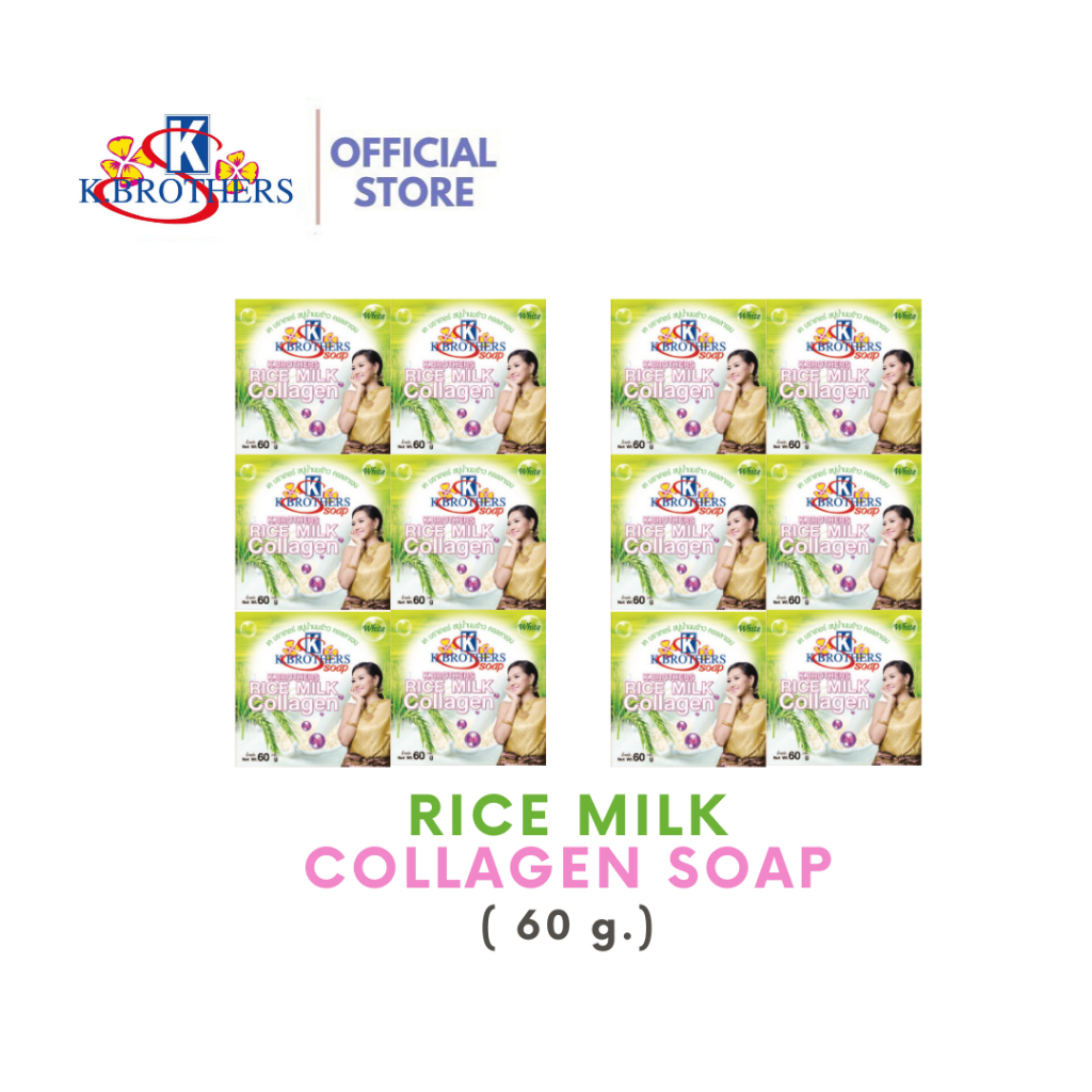 [ 12 ก้อน ] สบู่น้ำนมข้าวคอลลาเจน เคบราเทอร์ K.Brothers Rice Milk & Collagen Soap 60กรัม CODE471