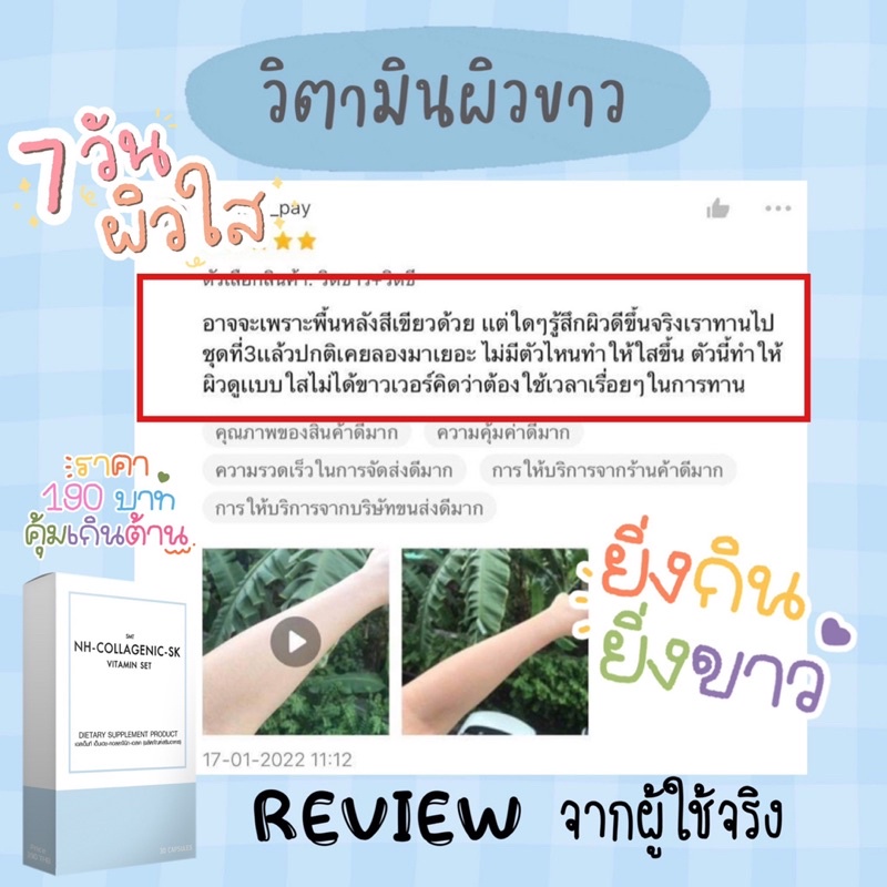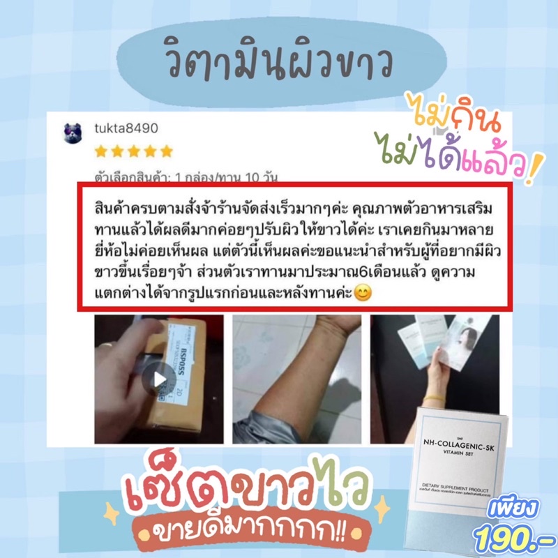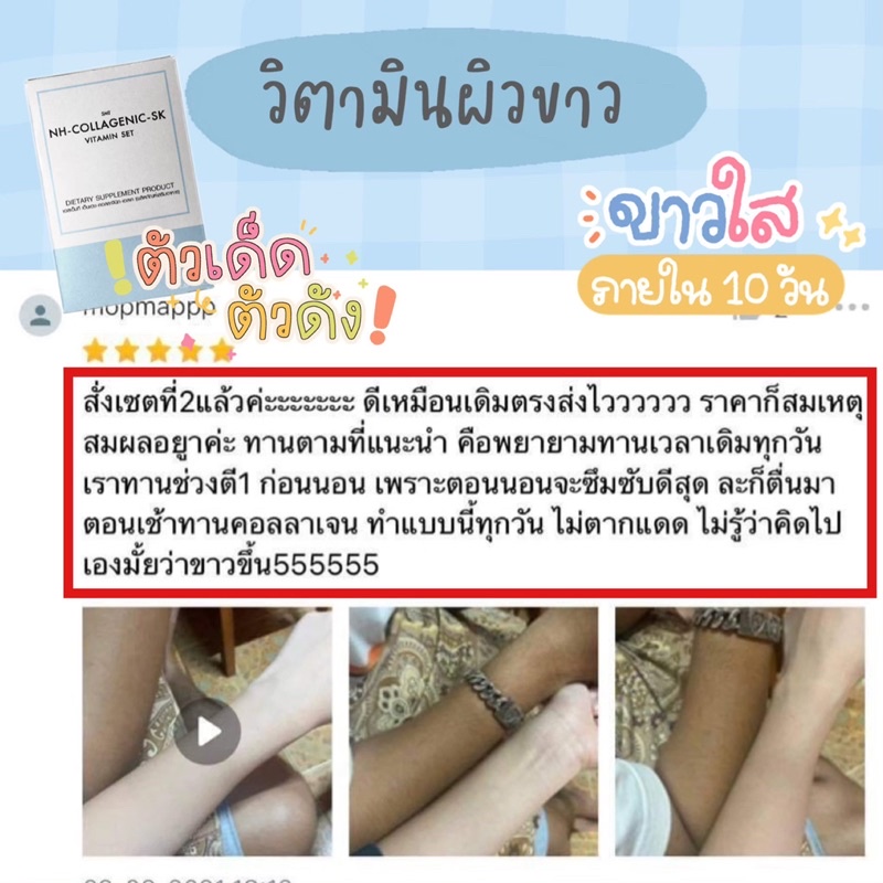 วิตามินผิวขาว อาหารเสริมเพื่อผิว มีส่วนผสมของคอลลาเจน กลูต้าไธโอน กระจ่างใสทั้งตัวชุด 10 วัน