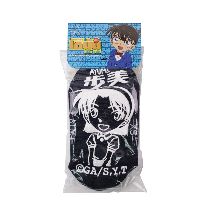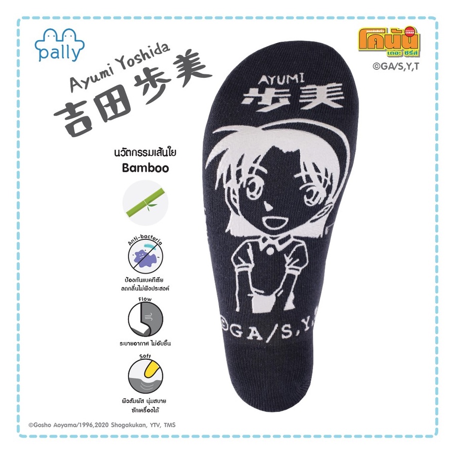 Pallyถุงเท้านักเรียนกันลื่นพื้นเทาผ้าฝ้ายผสมเยื่อไผ่การ์ตูนผู้หญิง Ayumi ลิขสิทธิ์ยอดนักสืบจิ๋วโคนัน