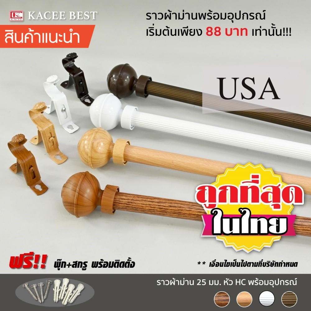 ราวผ้าม่าน 25 มม. หัว HC พร้อมอุปกรณ์ครบชุดสีตามราง