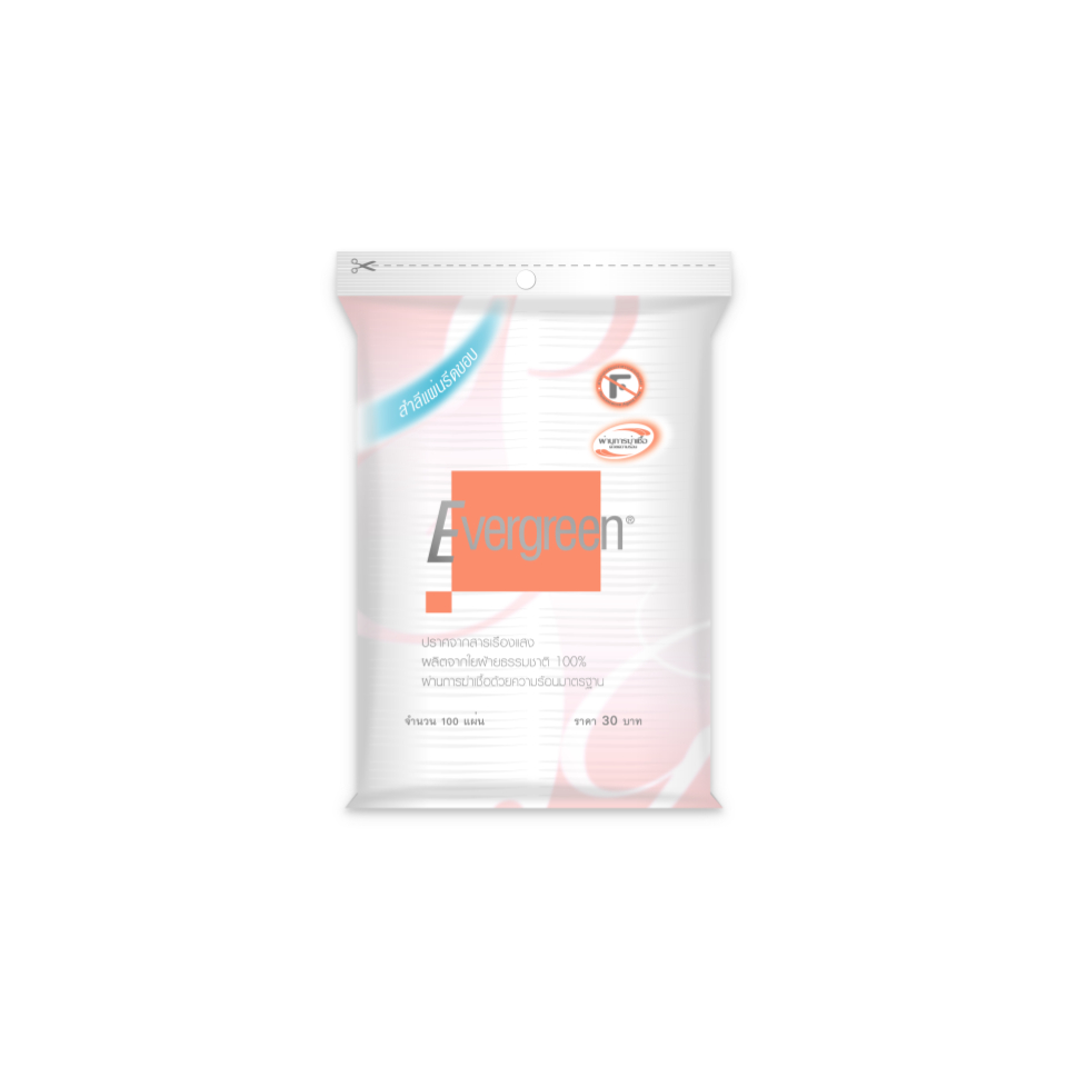 เอเวอร์กรีน สำลีแผ่นรีดขอบเอเวอร์กรีน 100 แผ่น / Evergreen Cotton Pad Pressed Edge Evergreen 100 pcs.