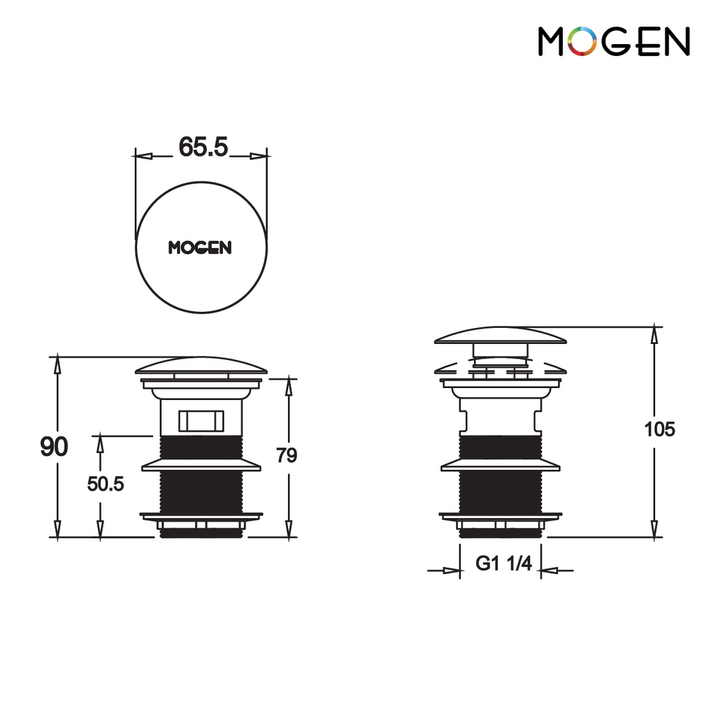 MOGEN WB04 สะดืออ่างล้างหน้าแบบกดฝาใหญ่ (มีรูน้ำล้น)