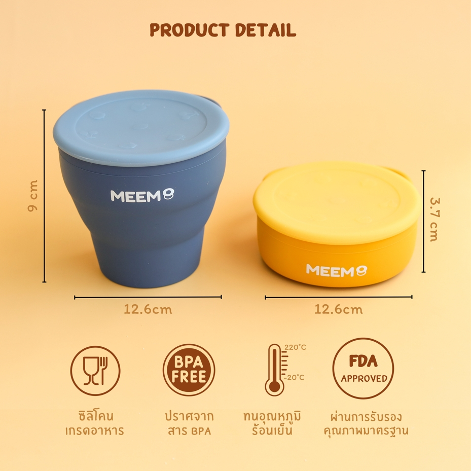 MEEM ถ้วยใส่ขนมกันหกซิลิโคน แบบพับได้ พร้อมฝาปิด ถ้วยขนมเด็ก Snack catcher (Colorful Series)