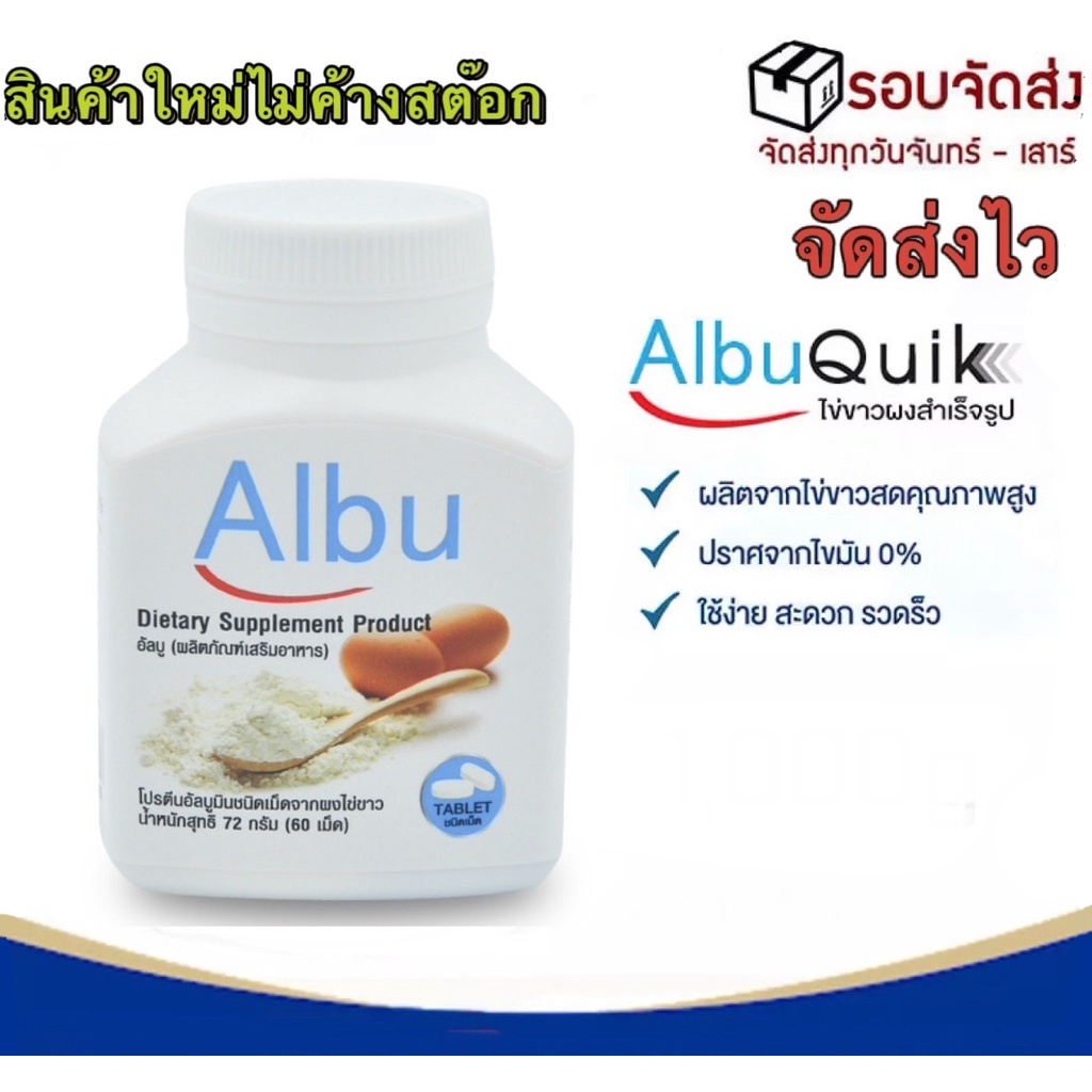 (มีส่งด่วนทันทีใน 2ชม.)🛵(60เม็ด/1กระปุก) Albu Quik ไข่ขาวเม็ด ไข่ขาวอัดเม็ด โปรตีนไข่ขาว อัลบูมิน Albumin ไข่เม็ด ไข่ขาว
