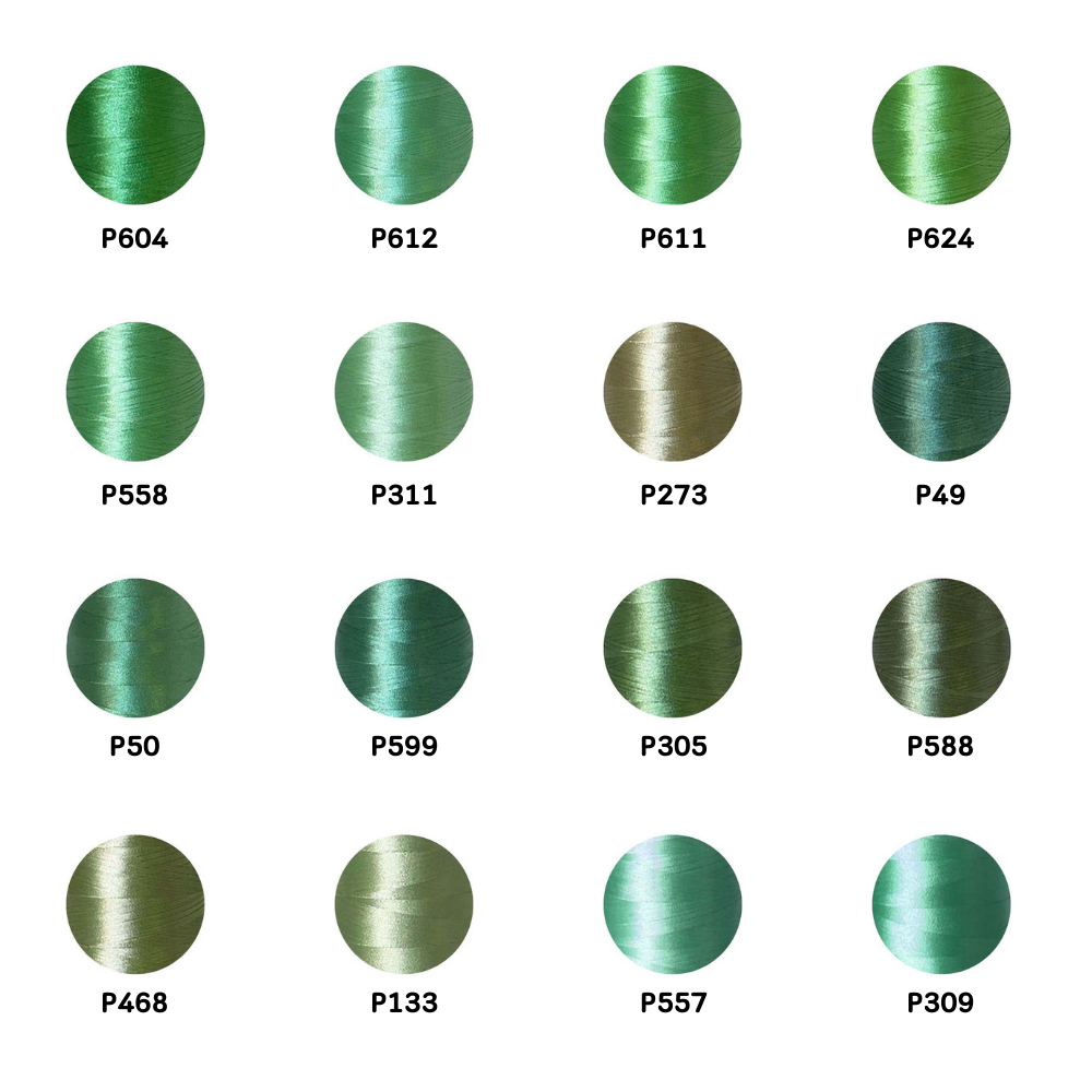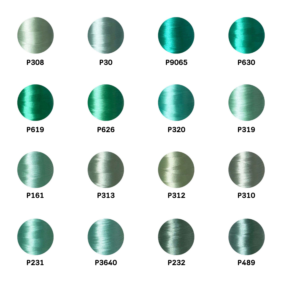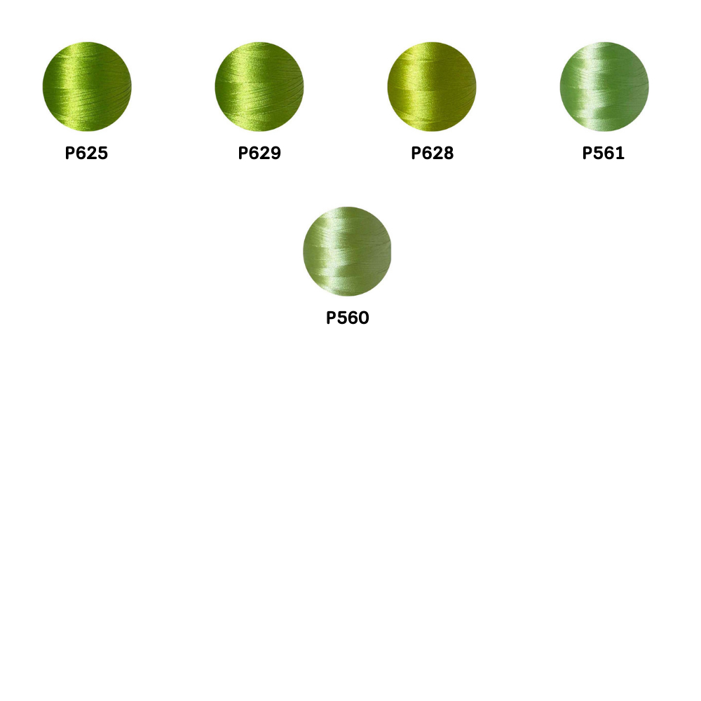 ไหมปัก GEM Embroidery Thread โทนเขียวอ่อน Light Green ซักฟอกสีไม่ตก 3,000 เมตร Oeko-Tex Class 1