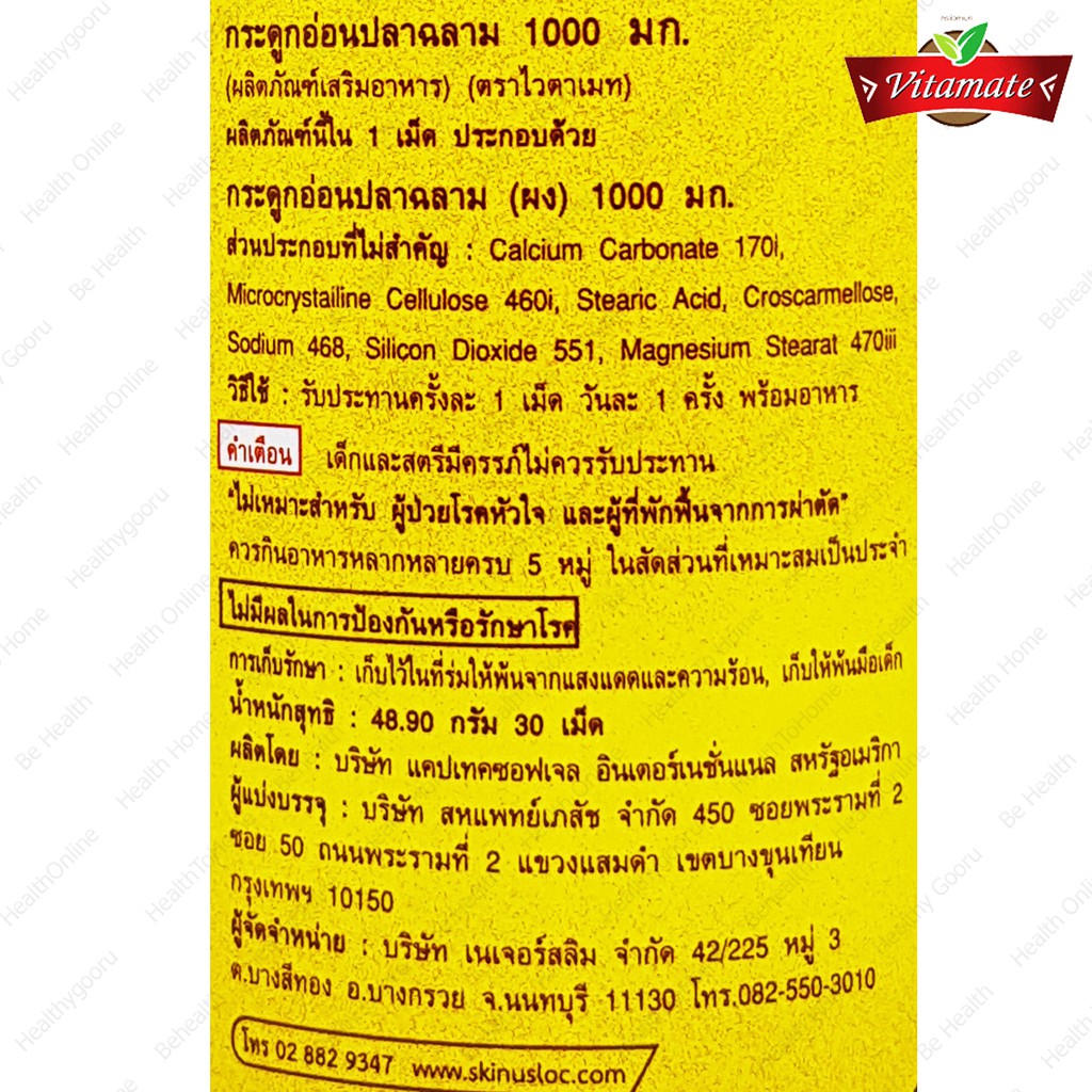 ไวตาเมท กระดูกอ่อนปลาฉลาม Vitamate Shark Cartilage 30 เม็ด