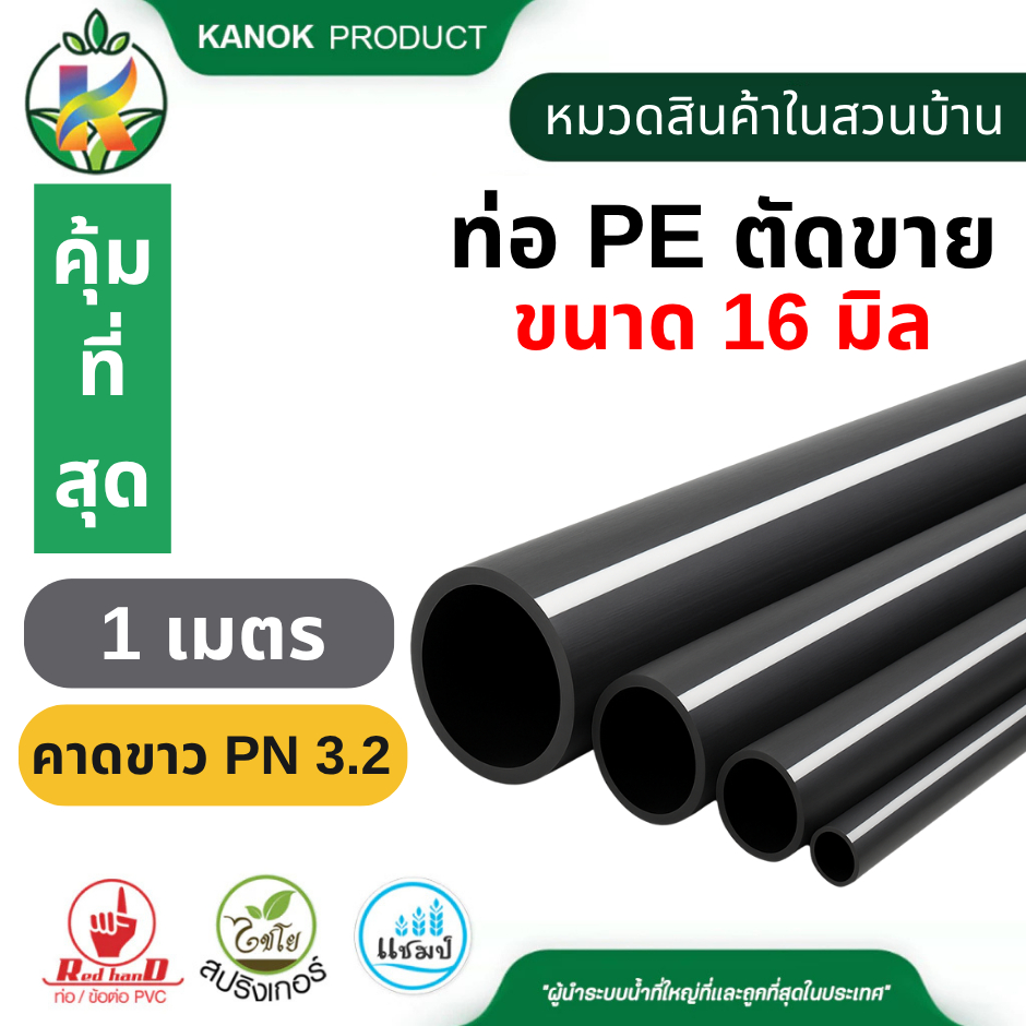 ท่อ PE ตัดขาย (1เมตร) ท่อพีอี 16-25 มิล คาดขาว PN 3.2 คาดส้ม PN 4 ใช้กับ สปริงเกอร์ ไชโย 398-16-1M