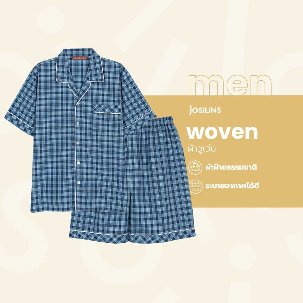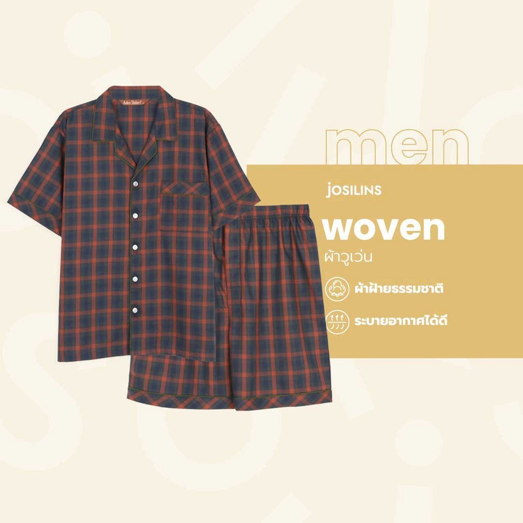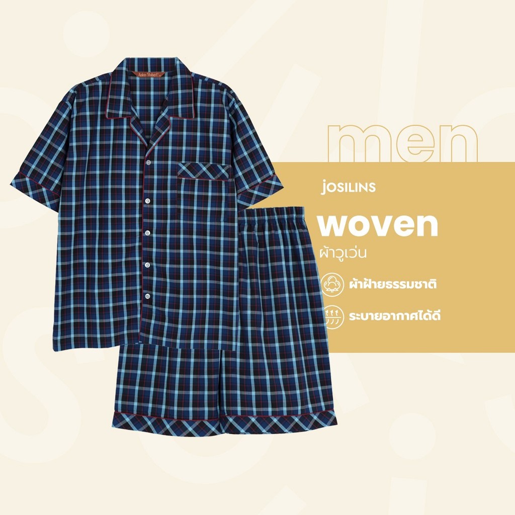 Josilins ชุดนอน ชุดอยู่บ้าน เสื้อแขนสั้น กางเกงขาสั้น ป้าย Anker Stubert ผ้าวูเว่น ใส่ได้ชายหญิง คละลาย