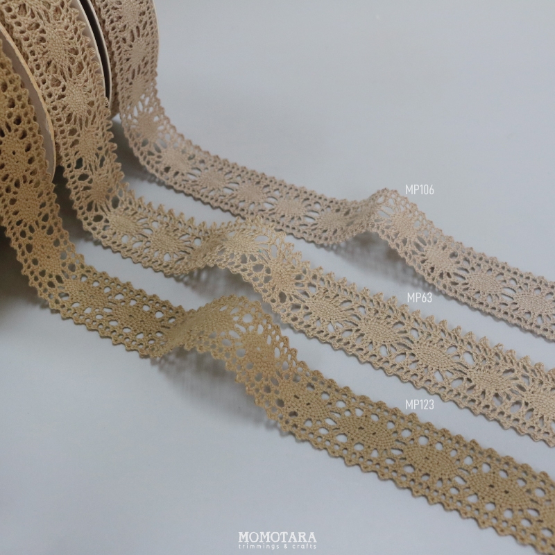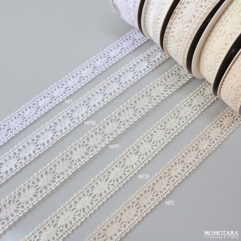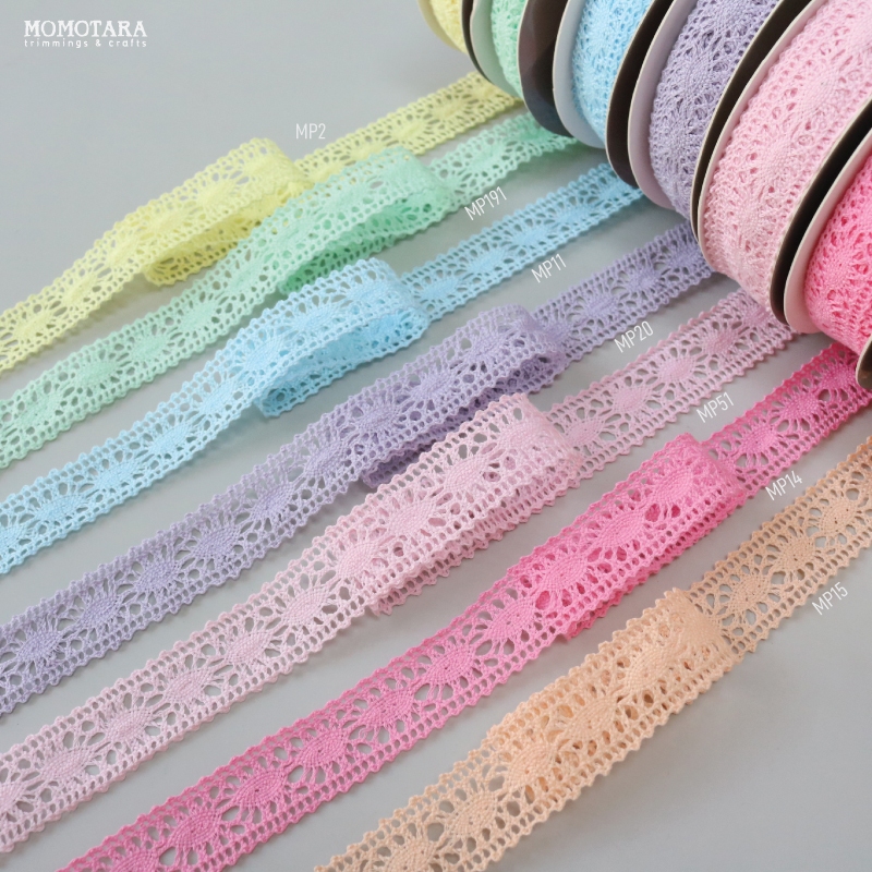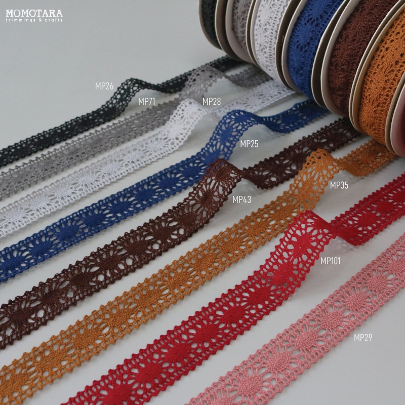 MOMOTARA No.7095 ลูกไม้ ทอลาย ไหมกึ่งเงา ขนาด 2.5 CM ยาว 18 หลา ริบบิ้นผ้า