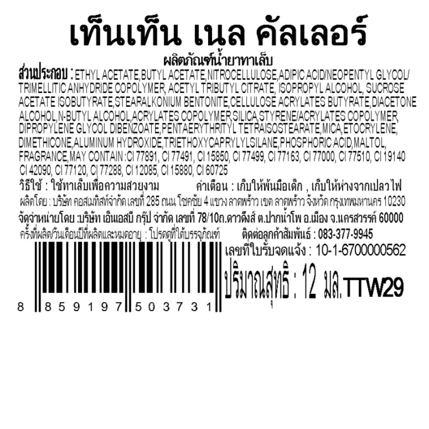 Ten Ten Nail Color 12ml. Pink TTW29 เท็นเท็น เนลคัลเลอร์ สีชมพู #TTW29