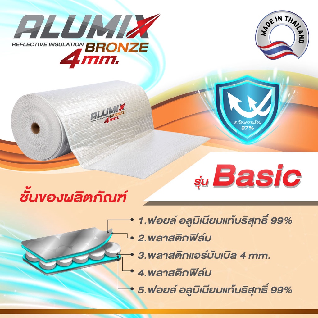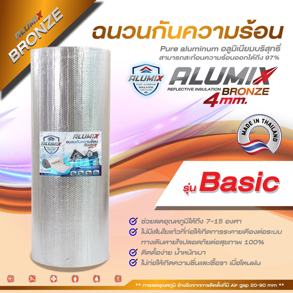 ALUMIX Insulation BRONZE (SL40) ฉนวนกันร้อน 97% Reflective แผ่นกันความร้อน ฟอยล์ 2 ด้าน 10/15/20m