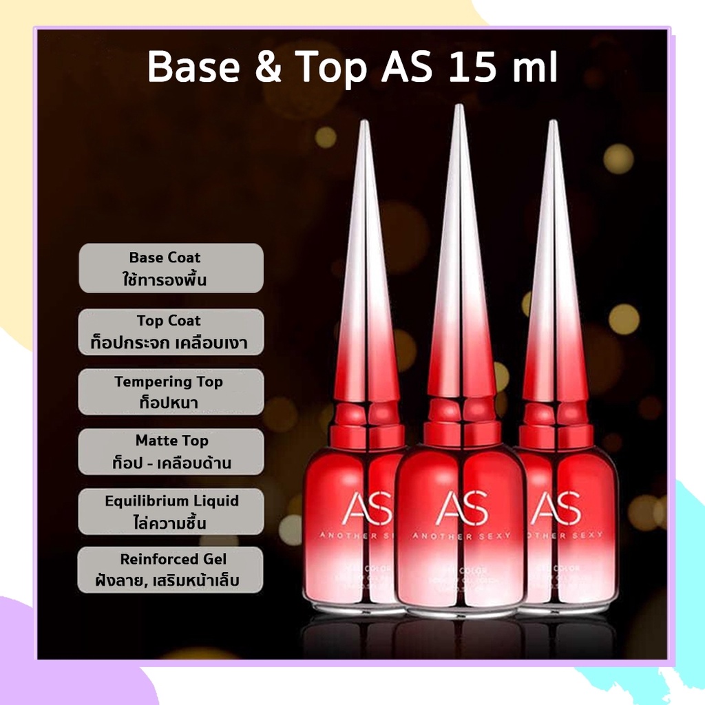 As ฝาแหลม Base coat ,Top coat,Top Matte,Reinforced,Equilibrium Liquid ขนาด 15ml.