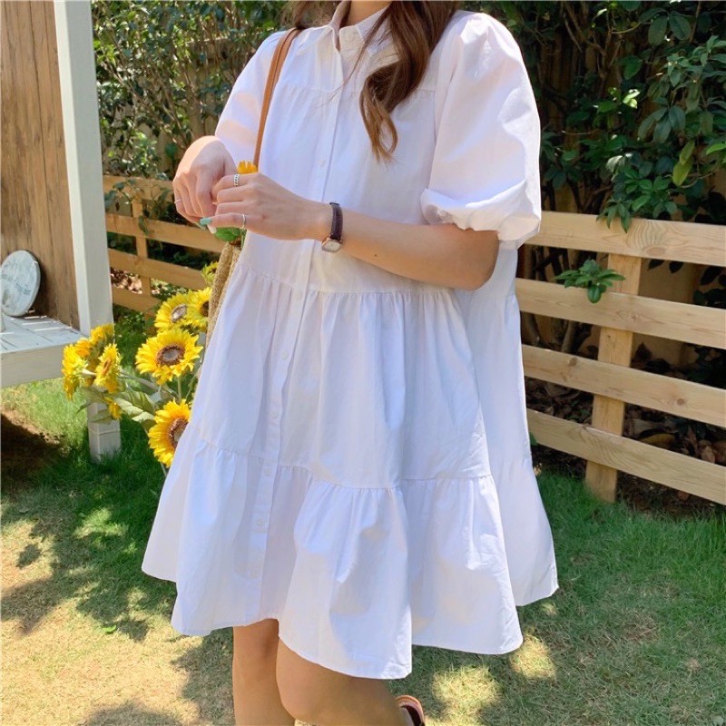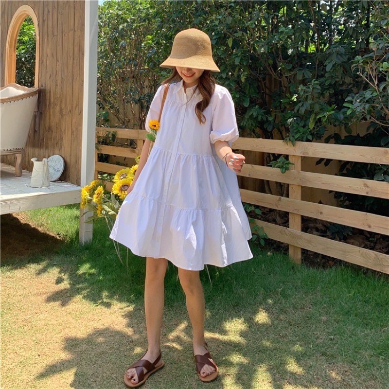 ZV0093 Sweet whitie dress ชุดเดรสคอปกทรงโอเวอร์ไซต์ อก 50 นิ้ว สาวอวบสาวมินิใส่ได้
