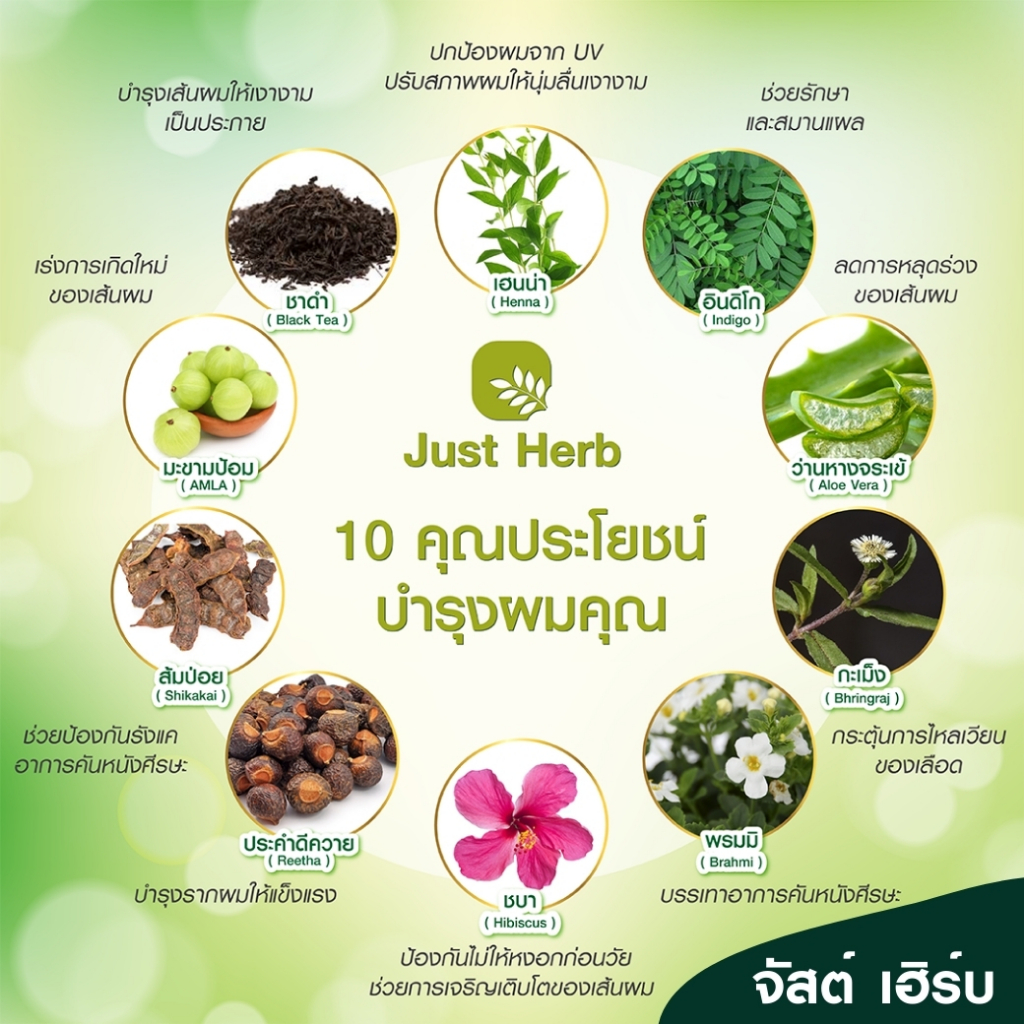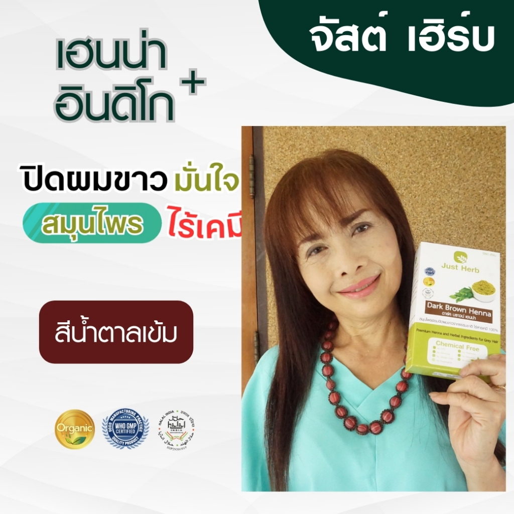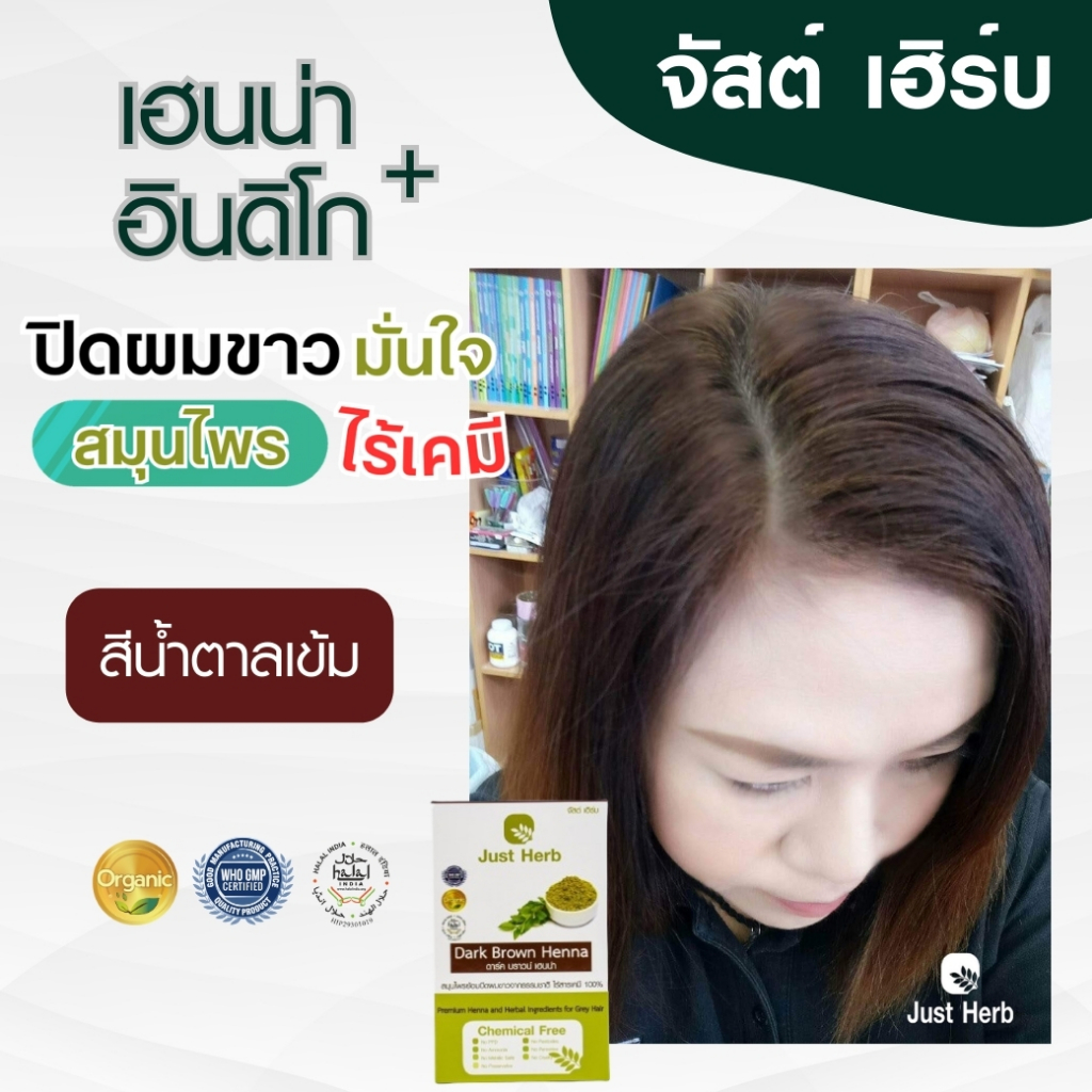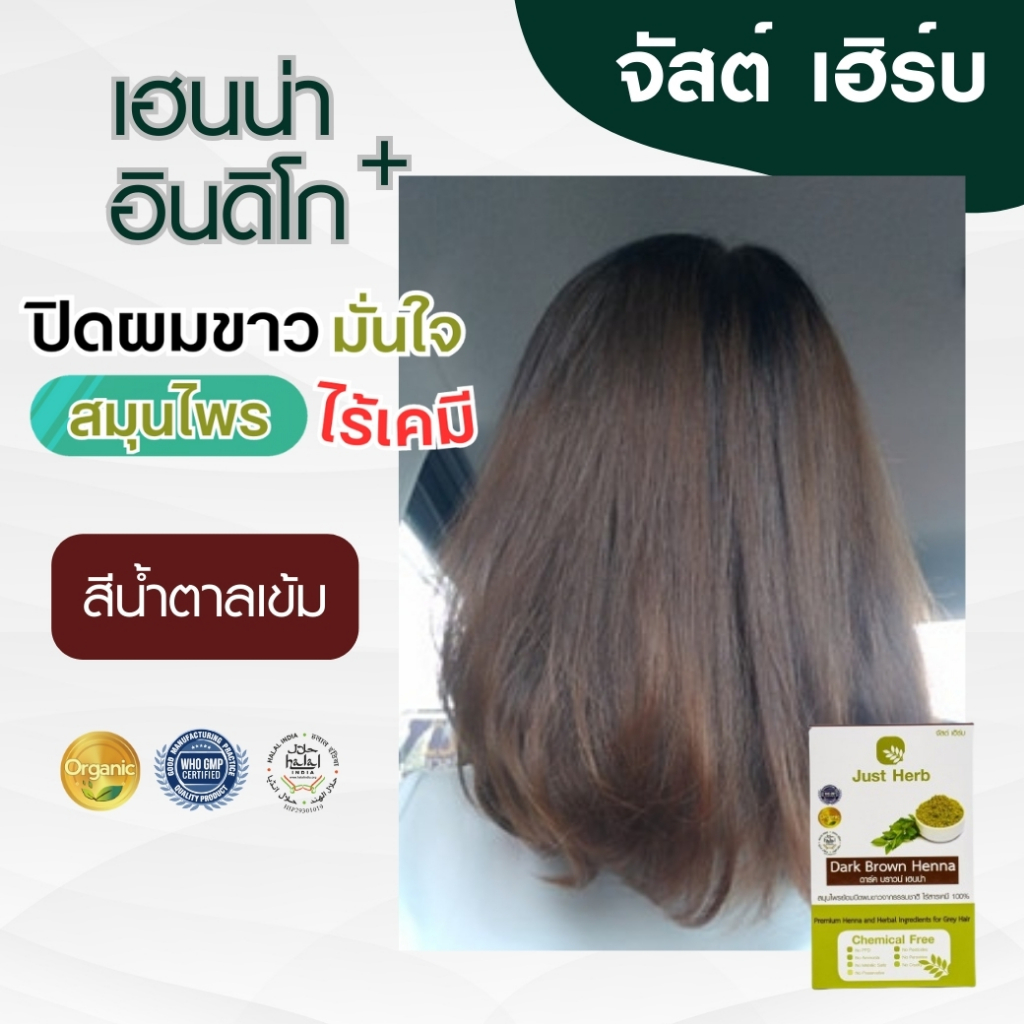 สมุนไพรย้อมหงอก สีน้ำตาลเข้ม ผ่านการฆ่าเชื้อจุลินทรีย์ พืชล้วนไร้เคมี 100% จัสต์ เฮิร์บ Just Herb