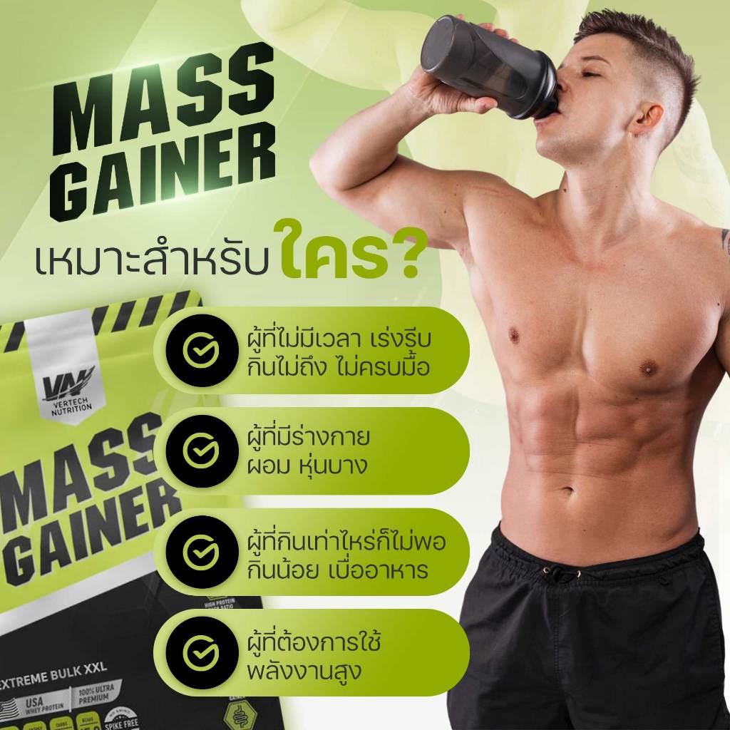 VERTECH NUTRITION WHEY PROTEIN MASS GAINER เวย์โปรตีน แมสเกนเนอร์ พลังงานสูง สูตรBulk 3Lb
