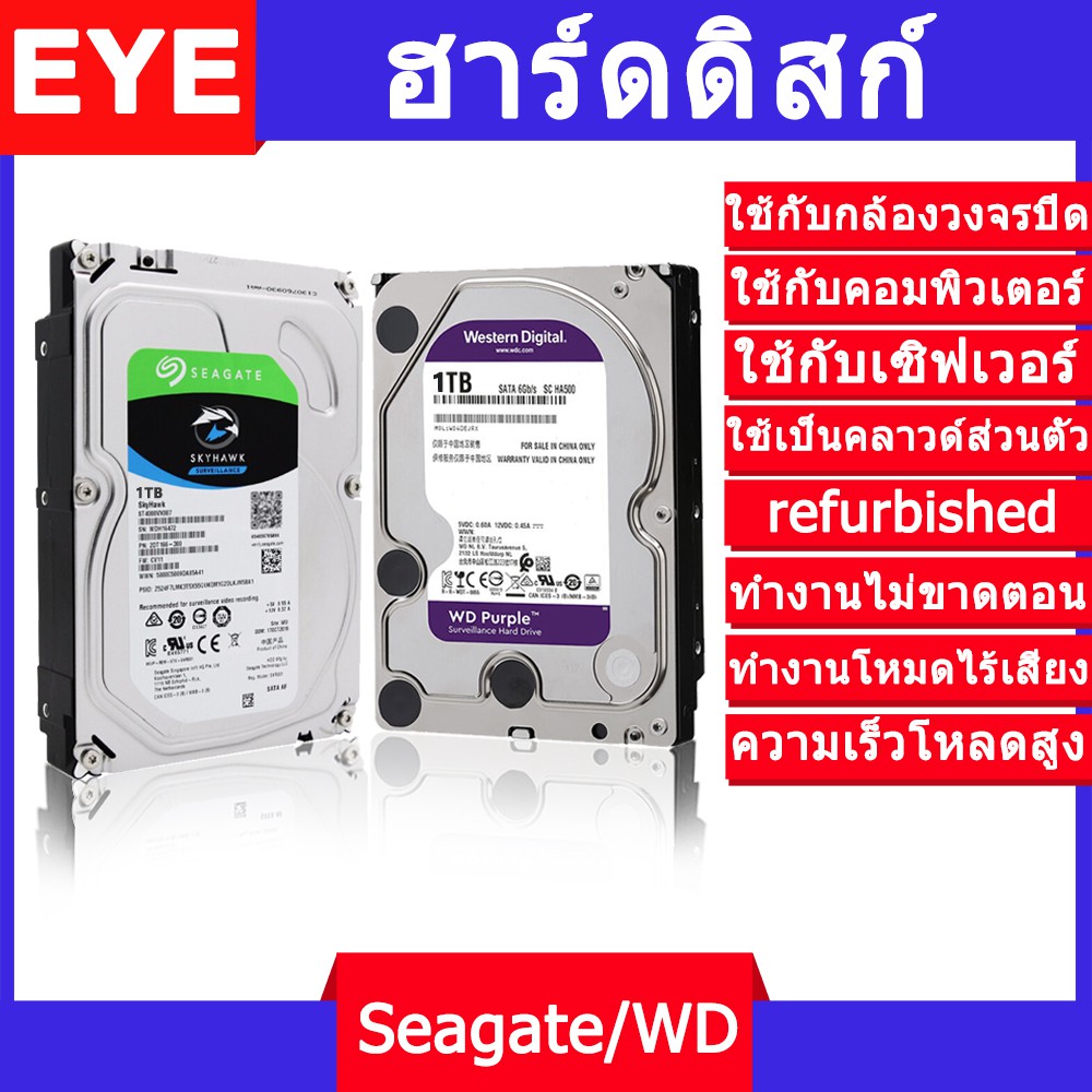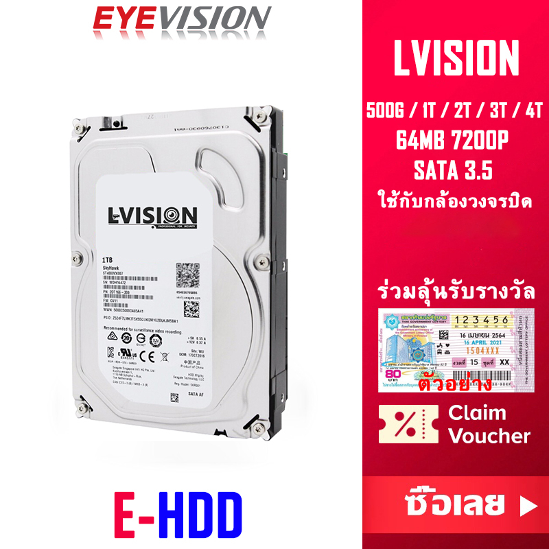 EYEVISION Premium LVISION WD Purple / Seagate SkyHawk 4TB 3TB 2TB 1TB 500G CCTV HDD อุปกรณ์จัดเก็บข้อมูล ฮาร์ดดิสก์ภายใน ฮาร์ดดิสก์กล้องวงจรปิด