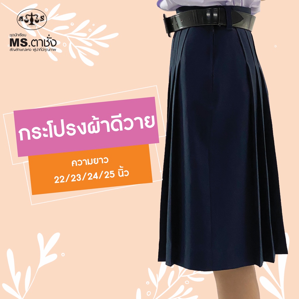 กระโปรงDY6จีบยาว22/23/24/25 นิ้ว สีกรมเข้ม ผ้ามัน ผ้าดีวายiรุ่นพรีเมี่ยม กระโปรงนักเรียนมัธยม MS ตาชั่ง