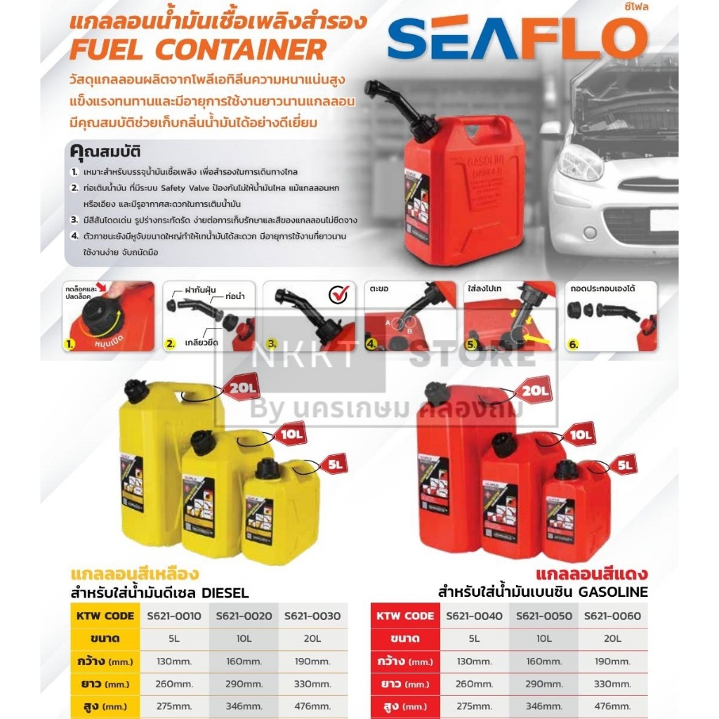 มีตัวเลือก สีแดง สีเหลือง🛢️ SEAFLO แกลลอนน้ำมันคุณภาพสูง สำหรับเบนซินและดีเซล (ขนาด 5L / 10L / 20L)