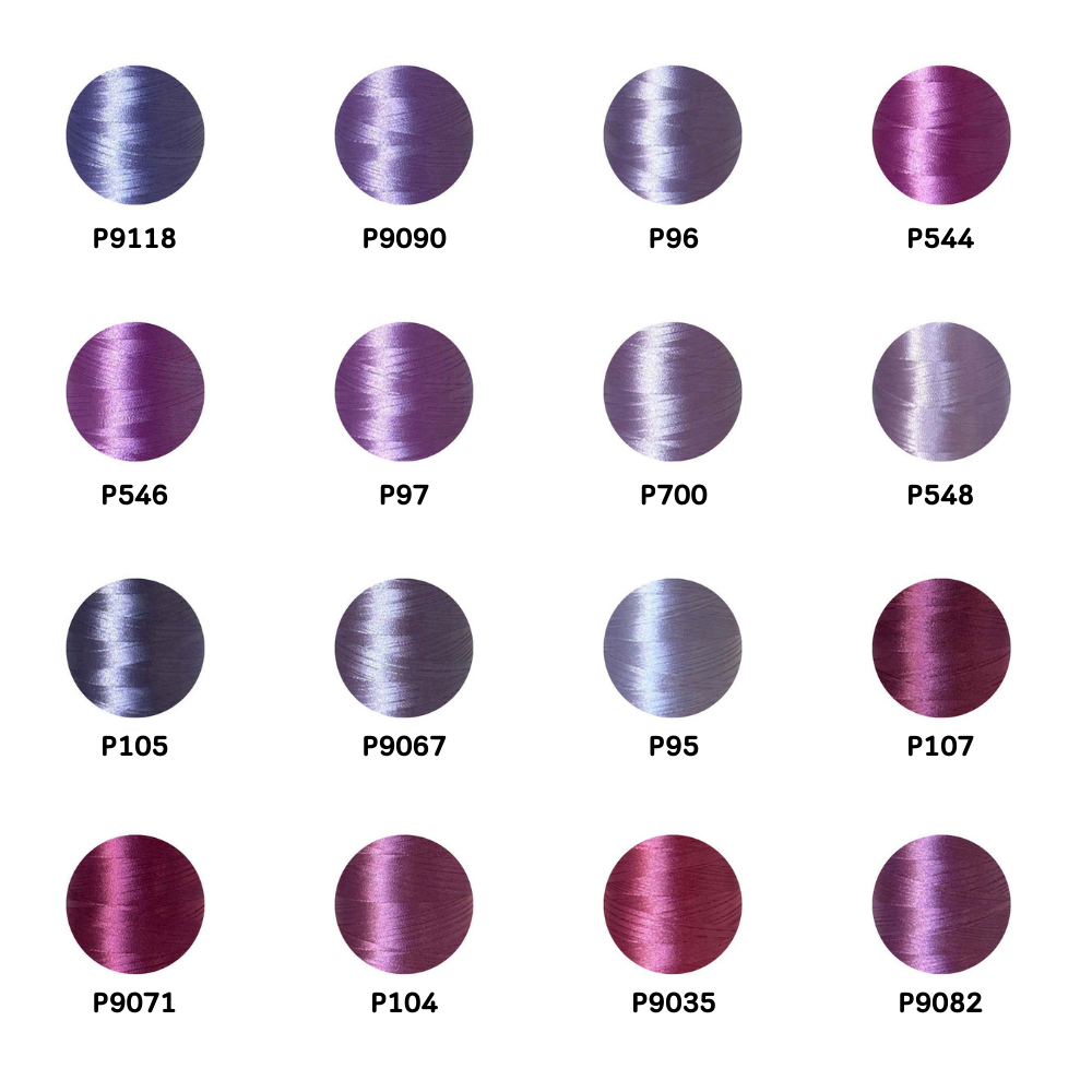 ไหมปัก GEM Embroidery Thread โทนม่วง Purple ซักฟอกสีไม่ตก 3,000 เมตร Oeko-Tex Class 1