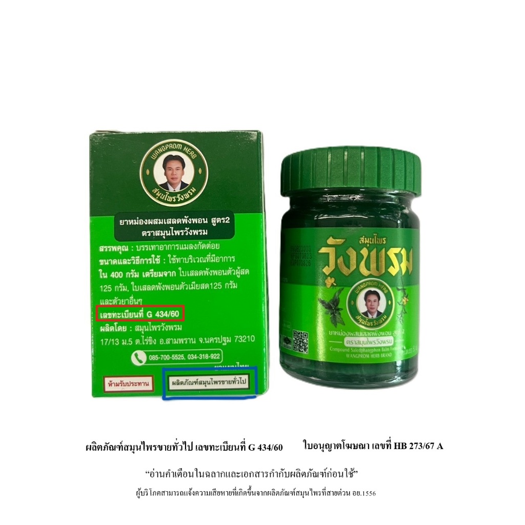 Wangpromherb (สมุนไพรวังพรม) ยาหม่องผสมเสลดพังพอน สูตร2 ขนาด 5g.+20g.+50g. ( 1 ชุด)