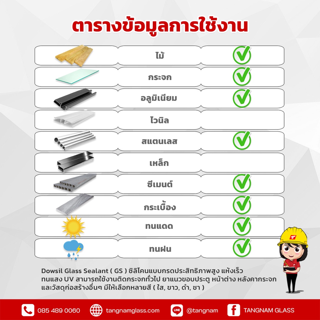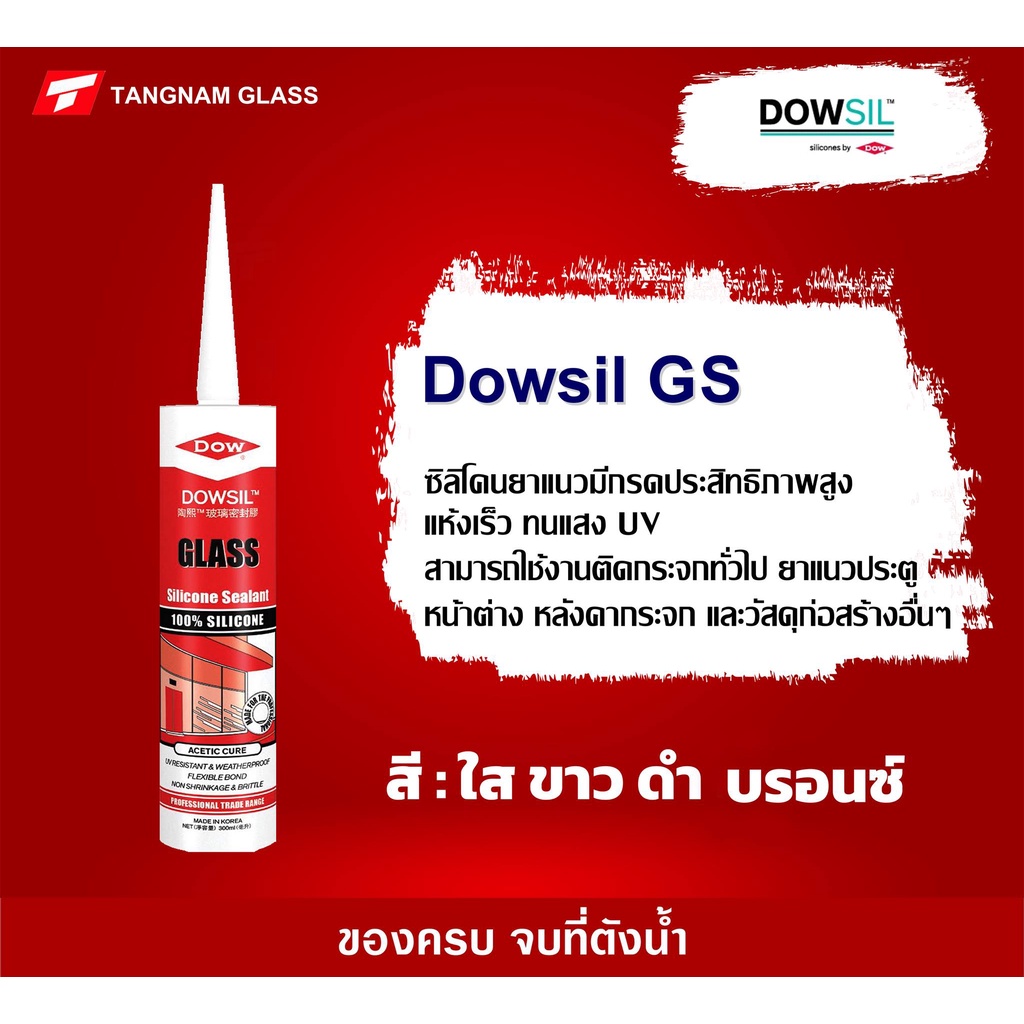 Dowsil GS กาวซิลิโคน (ขนาด 300ml.) ซิลิโคนแท้ 100% แห้งเร็ว ทนUV ยึดติดได้ดีบนวัสดุผิวเรียบ