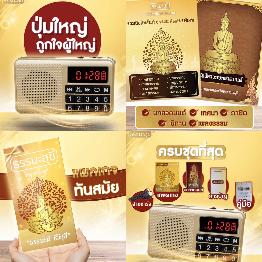 วิทยุธรรมะสุขีลิขสิทธิ์แท้ รุ่นปุ่มใหญ่ล่าสุด เสียงชัด แบตนาน 18 ชม. สวดมนต์ เทศนา นิทาน ประกัน 1 ปี