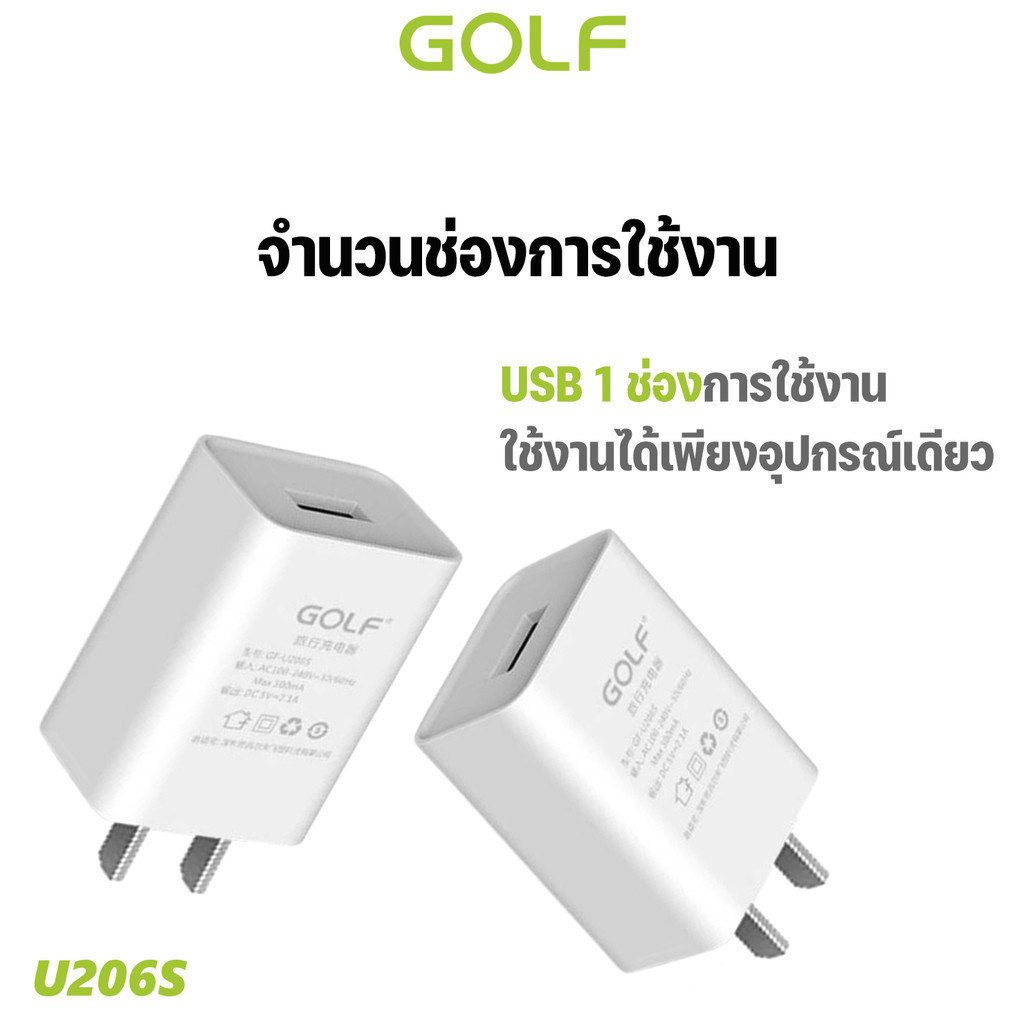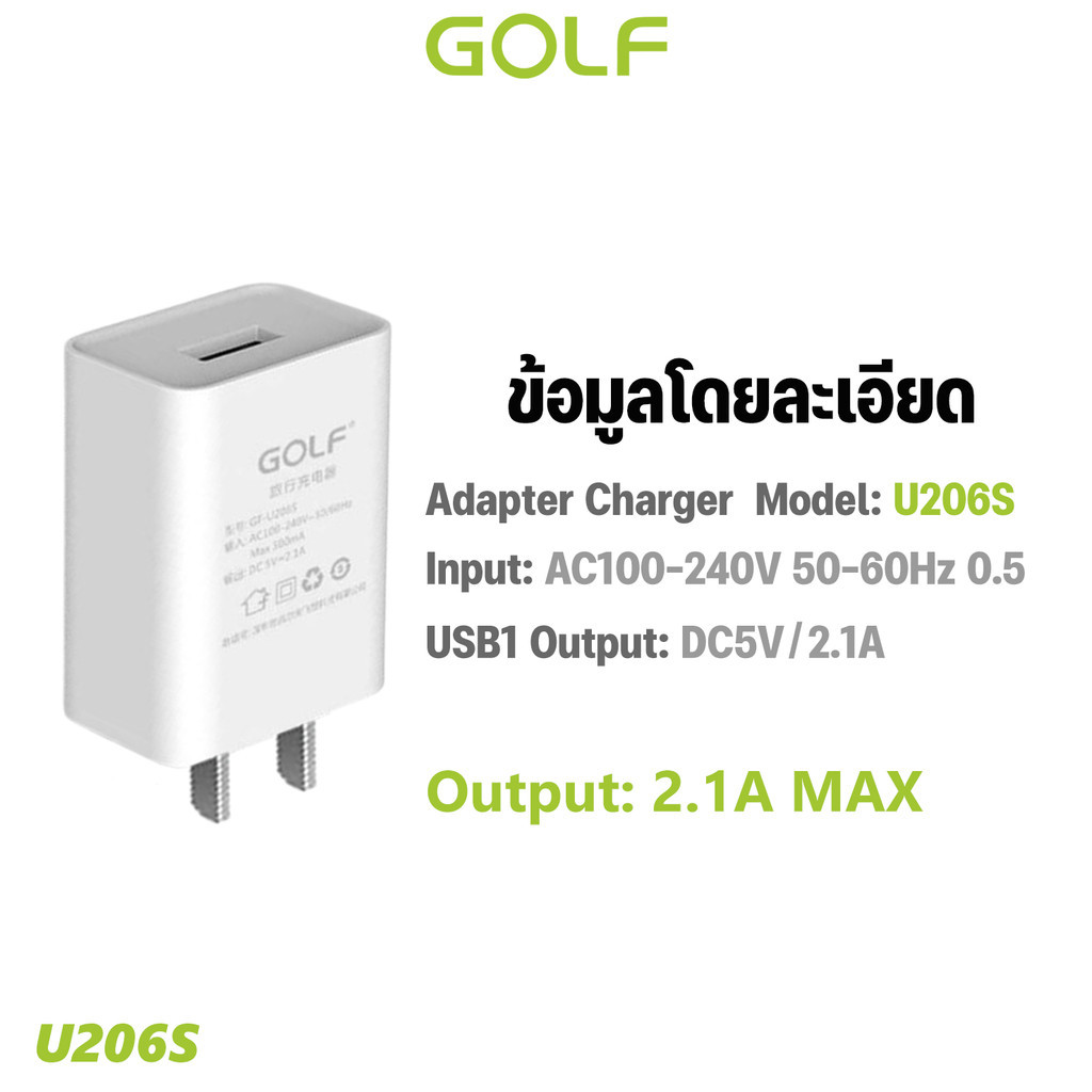 GOLFหัวชาร์จ รุ่นU206S Fast charger 2.1A 1USB ของแท้100% (มีสินค้าพร้อมส่งค่ะ)