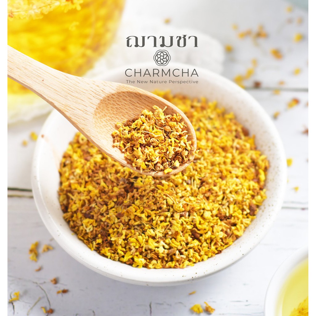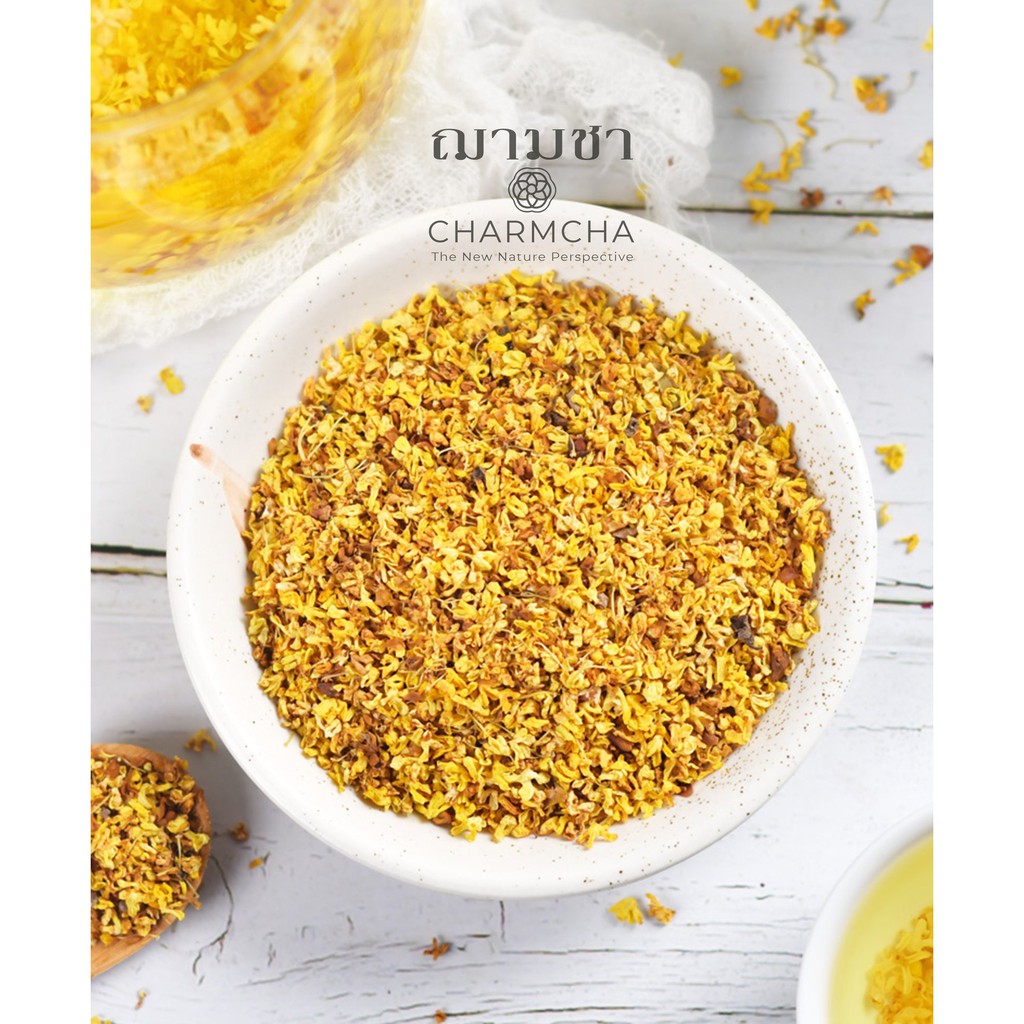 ชาหอมหมื่นลี้ (Osmanthus Tea) พรีเมี่ยม! บำรุงปอด สดชื่น แจ่มใส ลดภาวะเครียด ลดคลอเรสเตอรอลไขมัน ชาดอกไม้ Charmcha ฌามชา