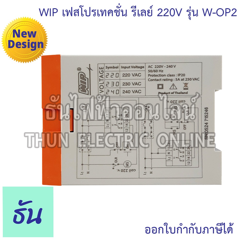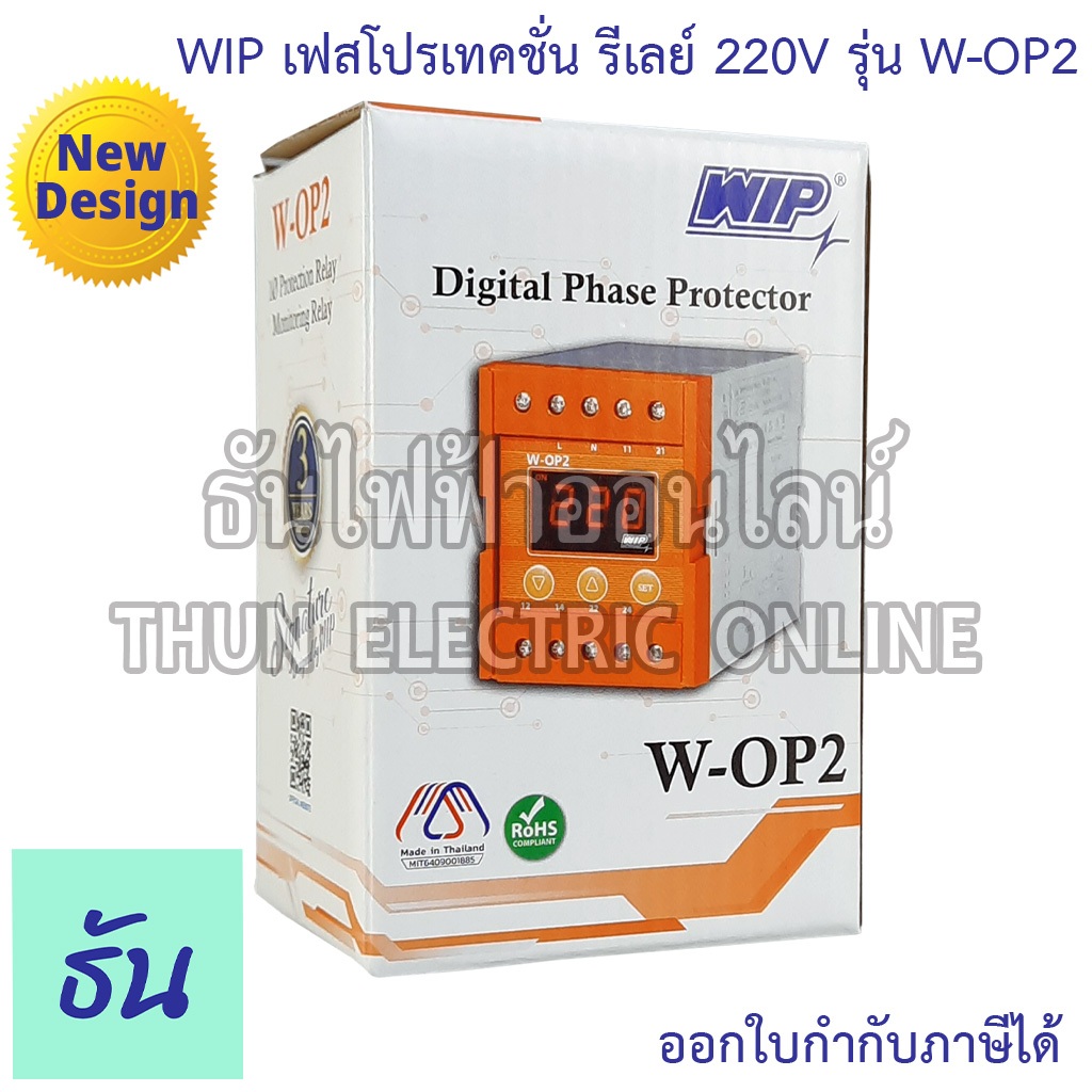 WIP เฟสโปรเทคชั่น รีเลย์ W-OP2 220V อุปกรณ์ป้องกันไฟตก ไฟเกิน Phase Protector Under Over Voltage ธันไฟฟ้า Thunelectric
