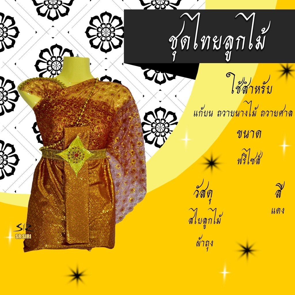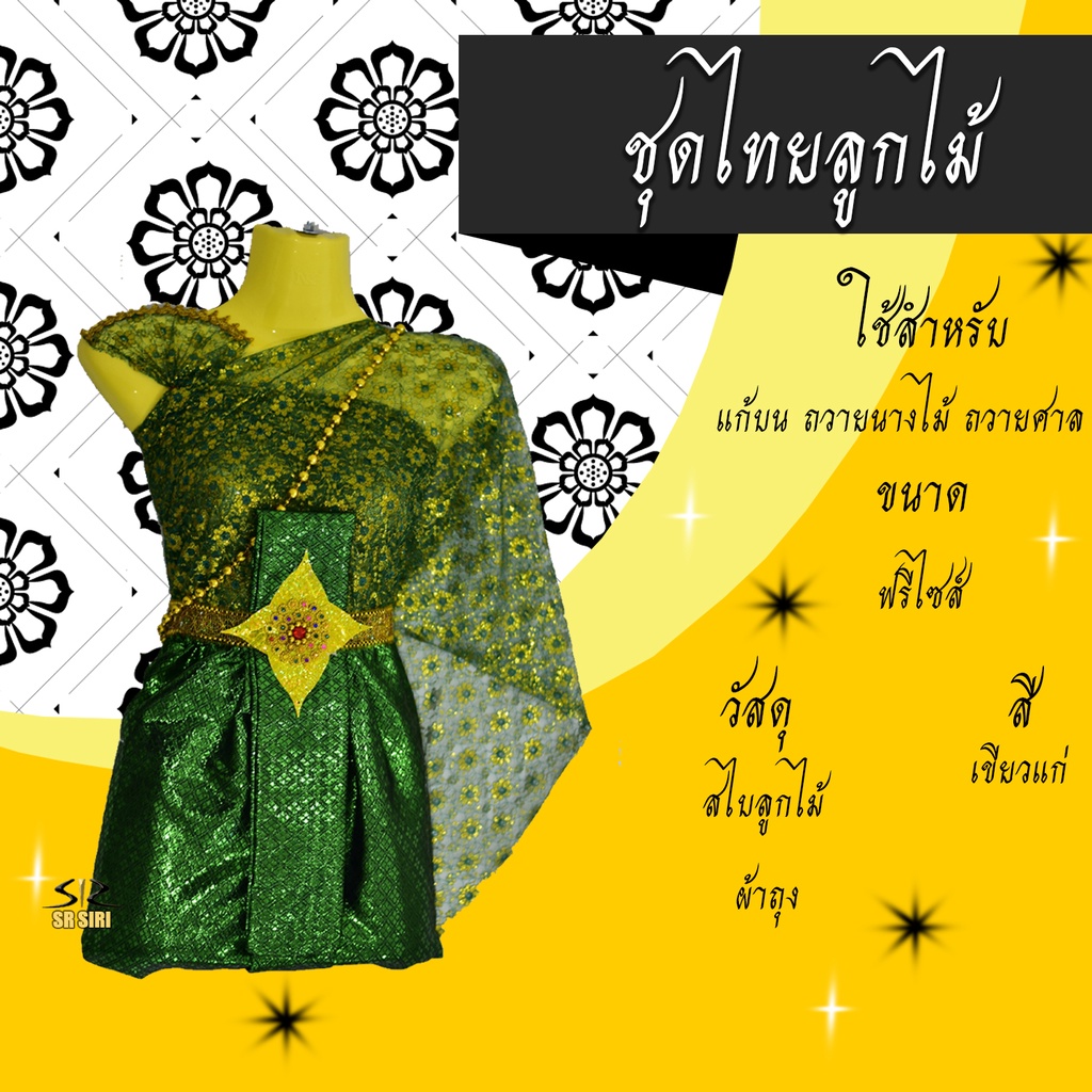 ชุดไทยแก้บน ลายลูกไม้ ชุดไทยถวายนางไม้ แม่ตะเคียน เครื่องศาล