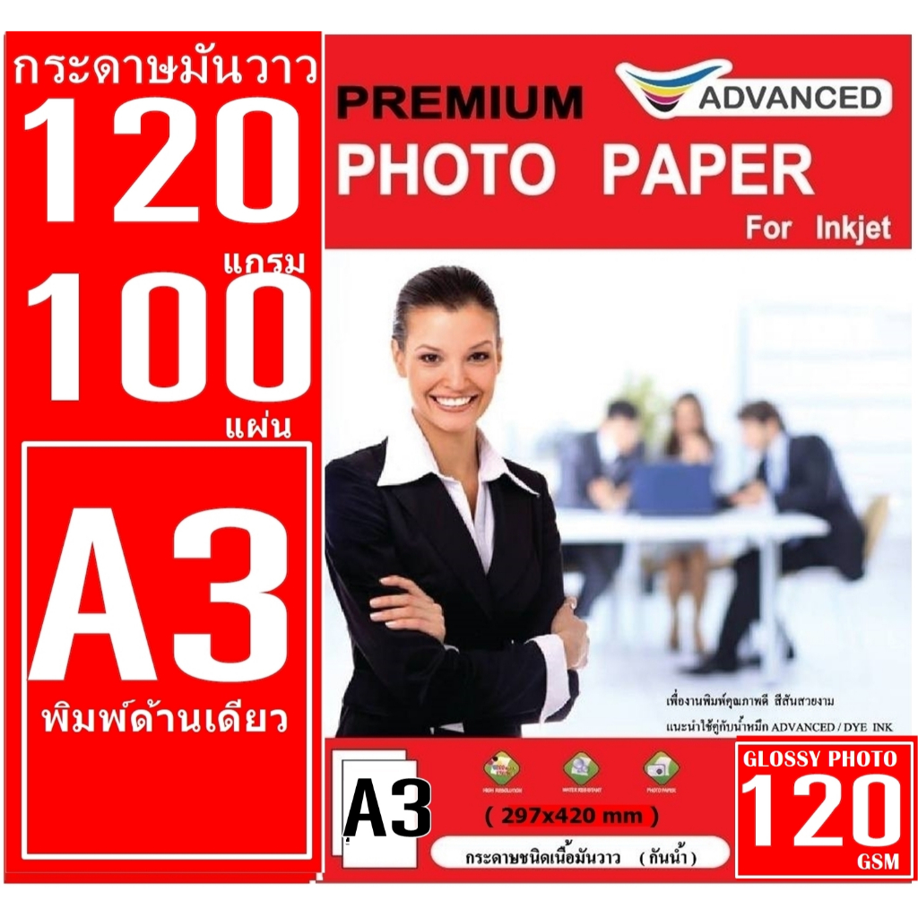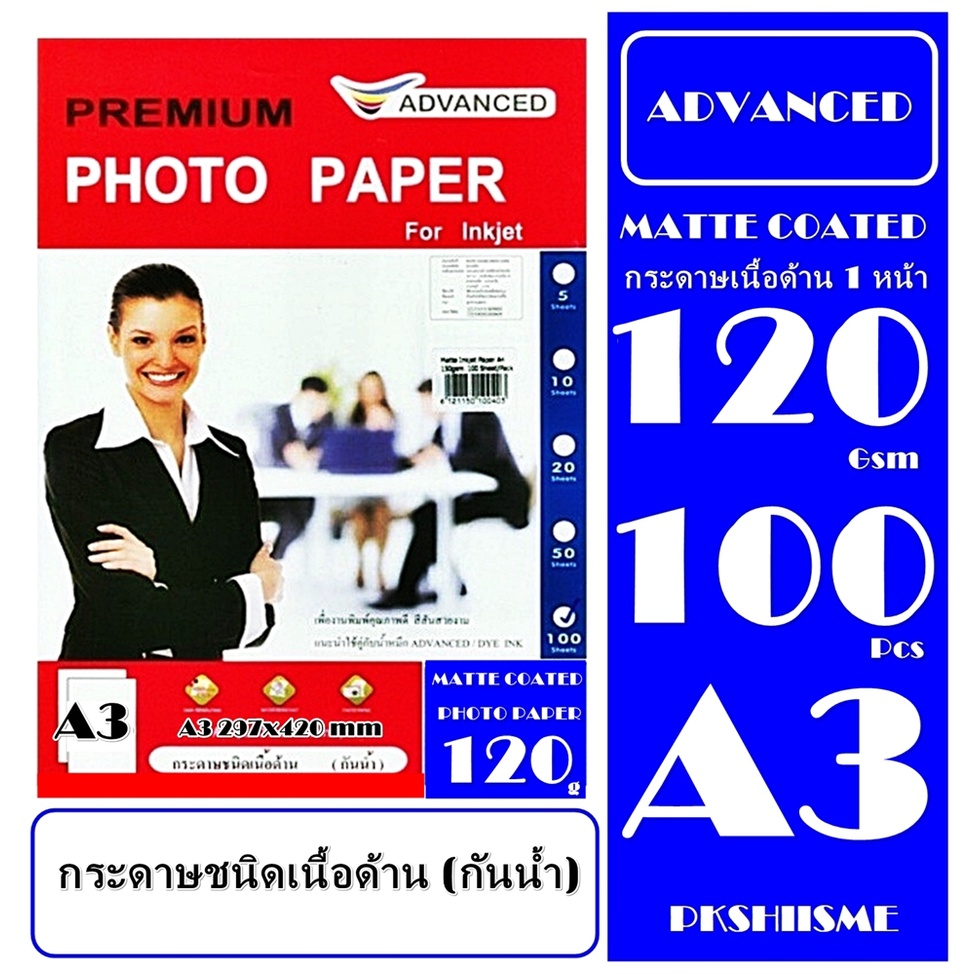 กระดาษโฟโต้เนื้อด้าน-เนื้อมัน A3 ADVANCED 120แกรม 100 แผ่น 1หน้า เกรดพรีเมี่ยมสวยสด for Inkjet