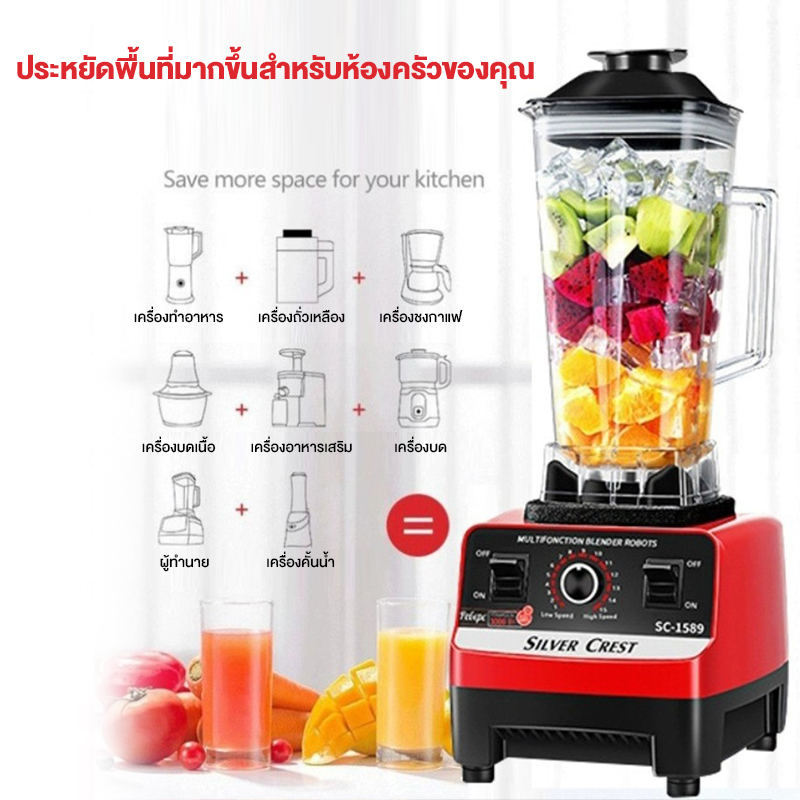 เครื่องปั่นน้ำผลไม้ Sliver Crest 2.5L 4500W 6ใบมีด ปั่นสมูทตี้ น้ำแข็งได้ อเนกประสงค์
