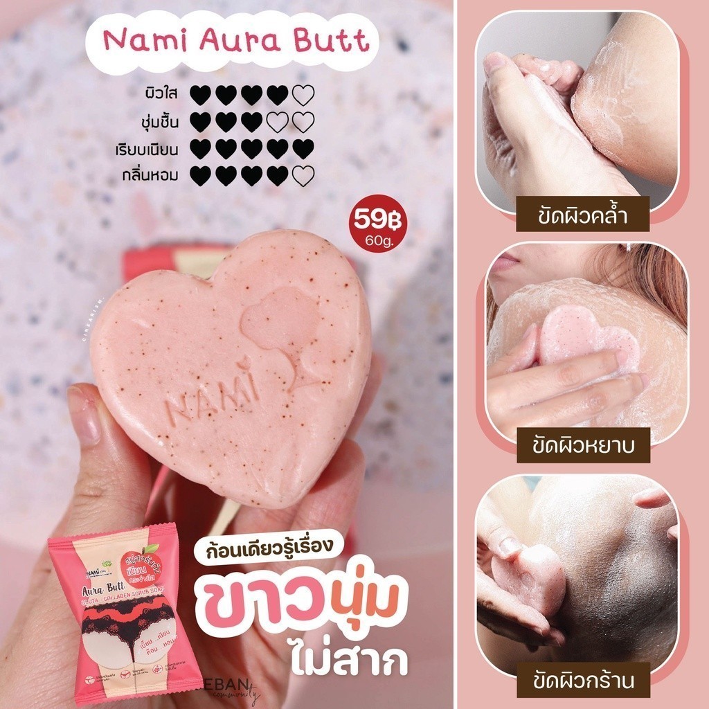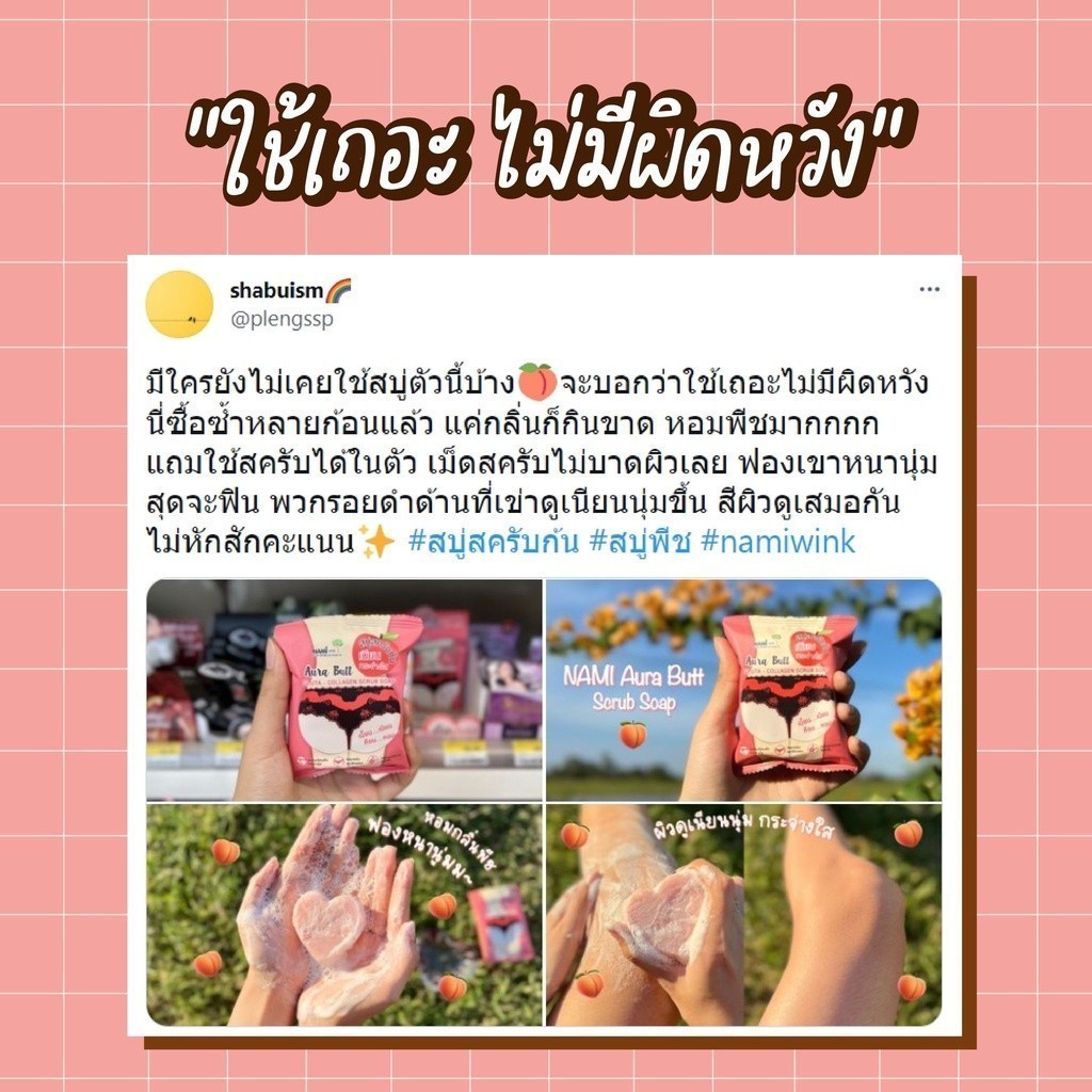สบู่พีชนามิ สบู่ขัดผิวใส ก้นเนียน นุ่มเด้ง หอมละมุน Nami aura butt gluta-collagen scrub soap