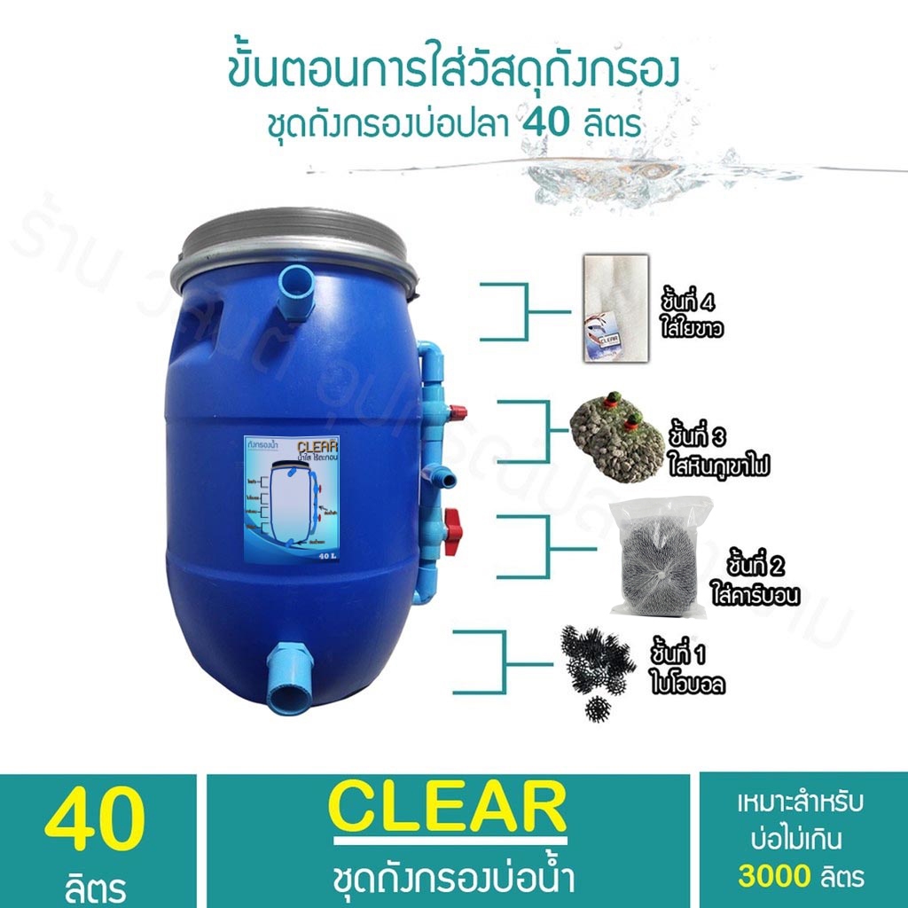 ถังกรองบ่อปลา 40 ลิตร (ออกล่าง) (ถูกที่สุด🔥 ดีที่สุด🔥)