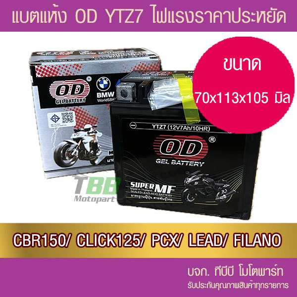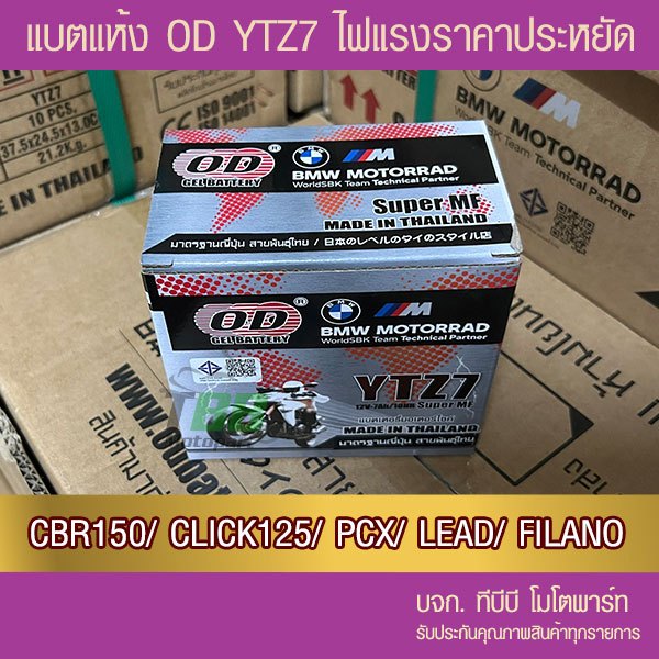 แบตรถมอเตอร์ไซค์ OD YTZ7 (12V 7Ah) -แบตแห้ง