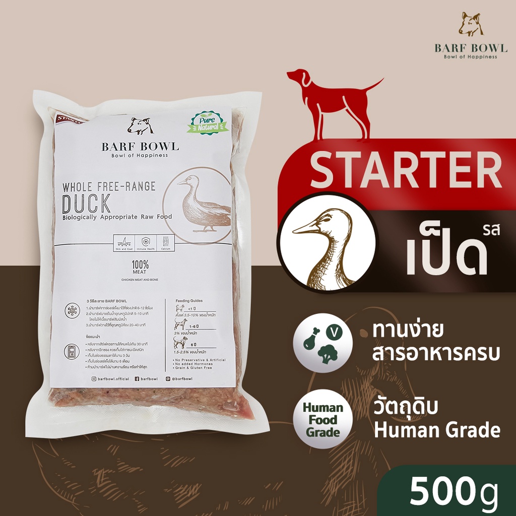 บาร์ฟสุนัข - BARF สูตรเป็ดล้วนแบบเริ่มต้น l 500g - (Starter) FREE-RANGE DUCK