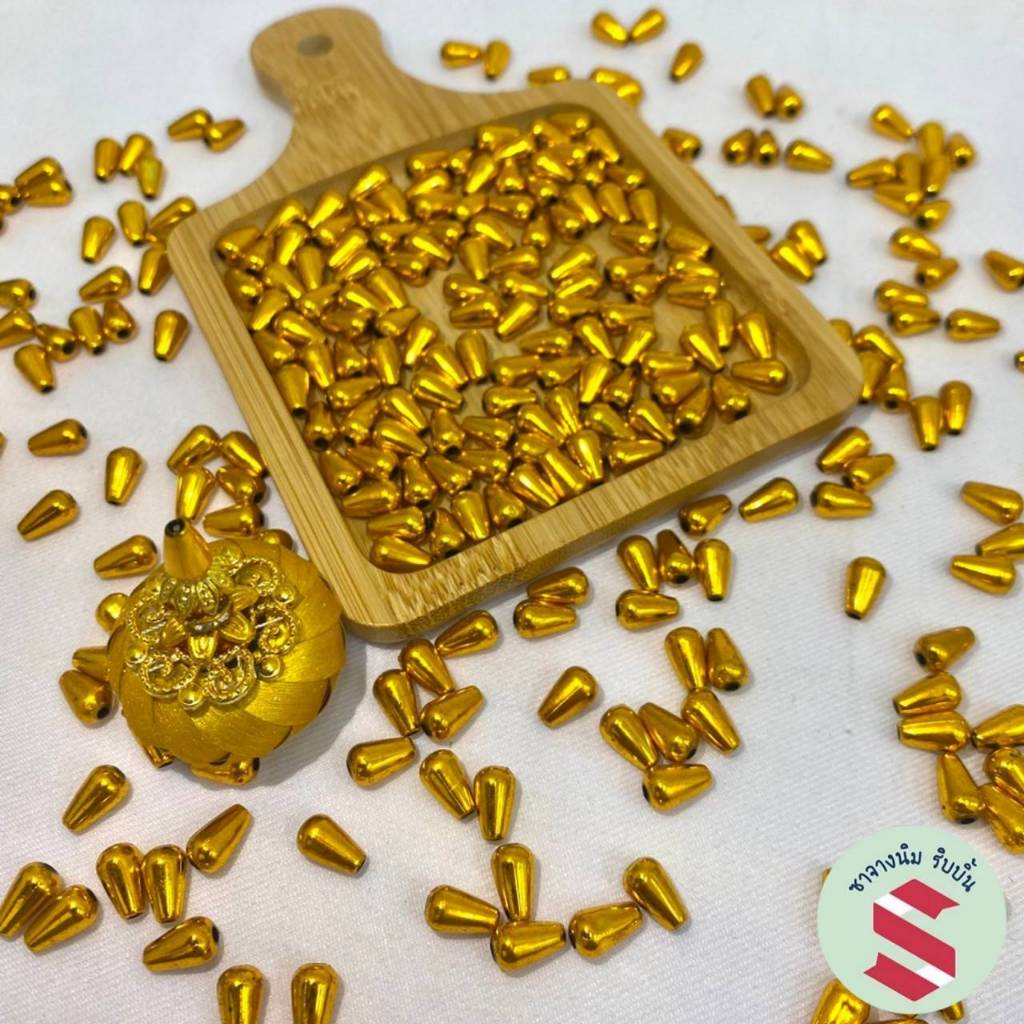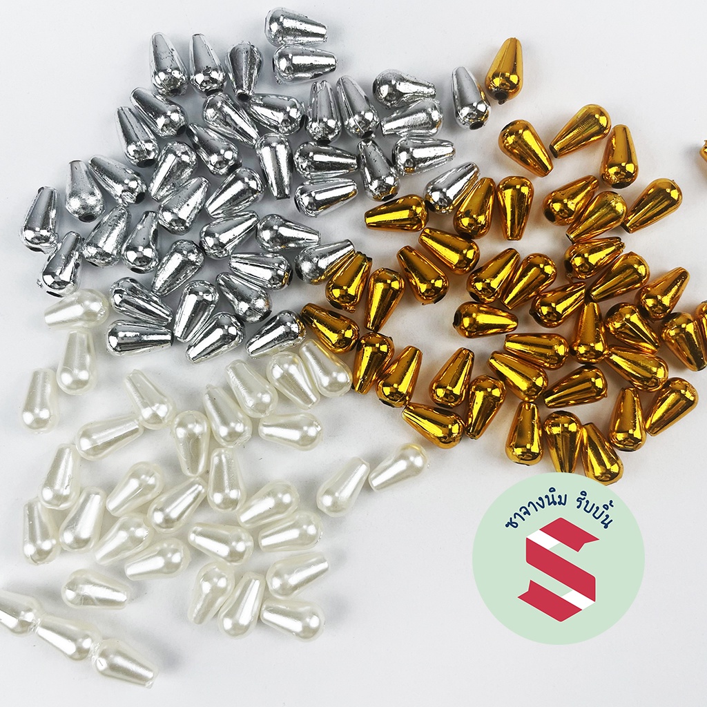 ลูกปัดหยดน้ำ100-300ชิ้น เงิน-ทอง-มุก (งานคัดเกรด) ชนาด 6*10มิล ใช้ตกแต่งงานเหรียญโปรยทาน และงานประดิษฐ์ต่างๆ