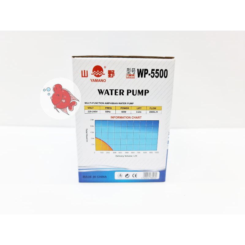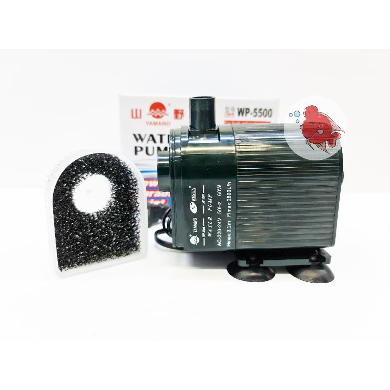 ปั๊มน้ำ ปั๊มตู้ปลา ปั๊มบ่อปลา ยามาโน่ Yamano WP5500 กรองฟองน้ำด้านหน้า แรงดันน้ำ2,800 ลิตร:ชม. กำลังไฟฟ้า 60วัตต์