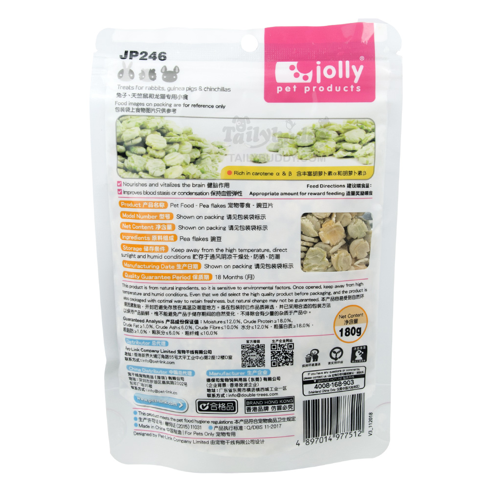 Jolly Xtra Bite Pea Flakes ถั่วลันเตาอบแห้ง สำหรับ กระต่าย แกสบี้ และชินชิล่า (180g) (JP246)
