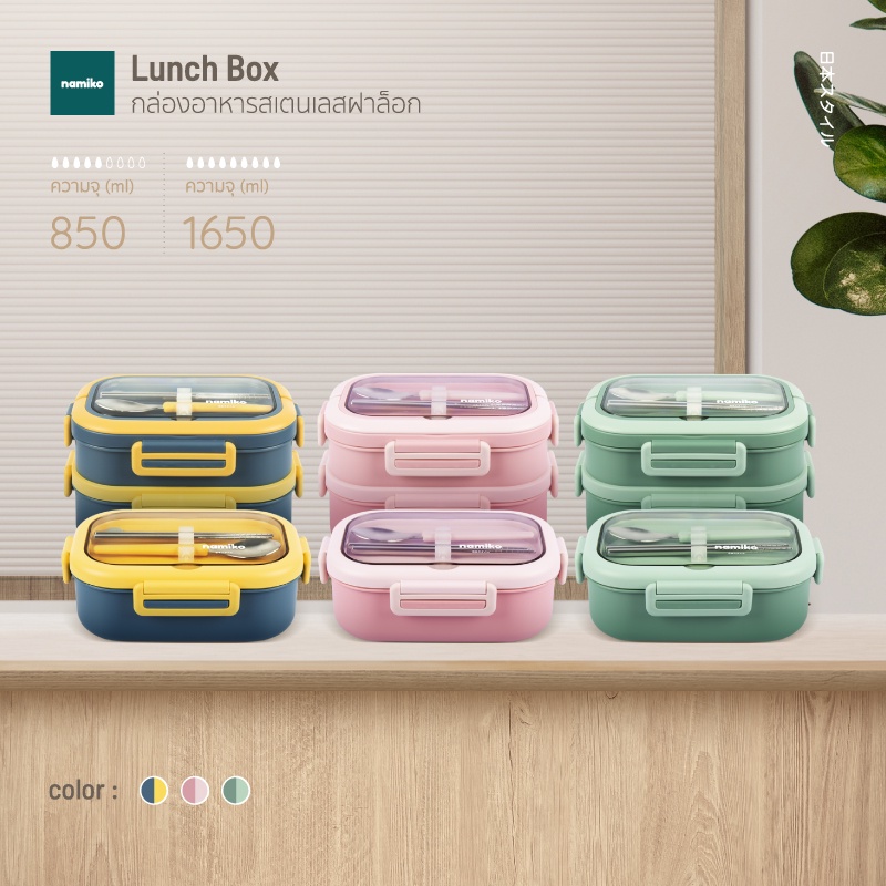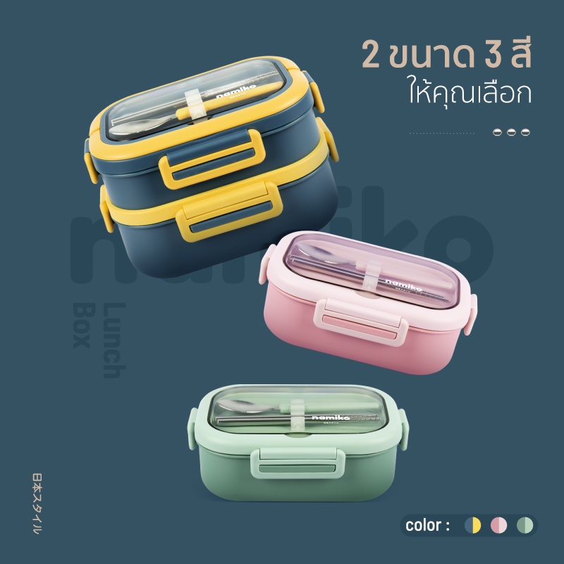 Namiko กล่องอาหารสเตนเลสฝาล็อก พร้อมช้อนและตะเกียบ 850, 1,650 ml